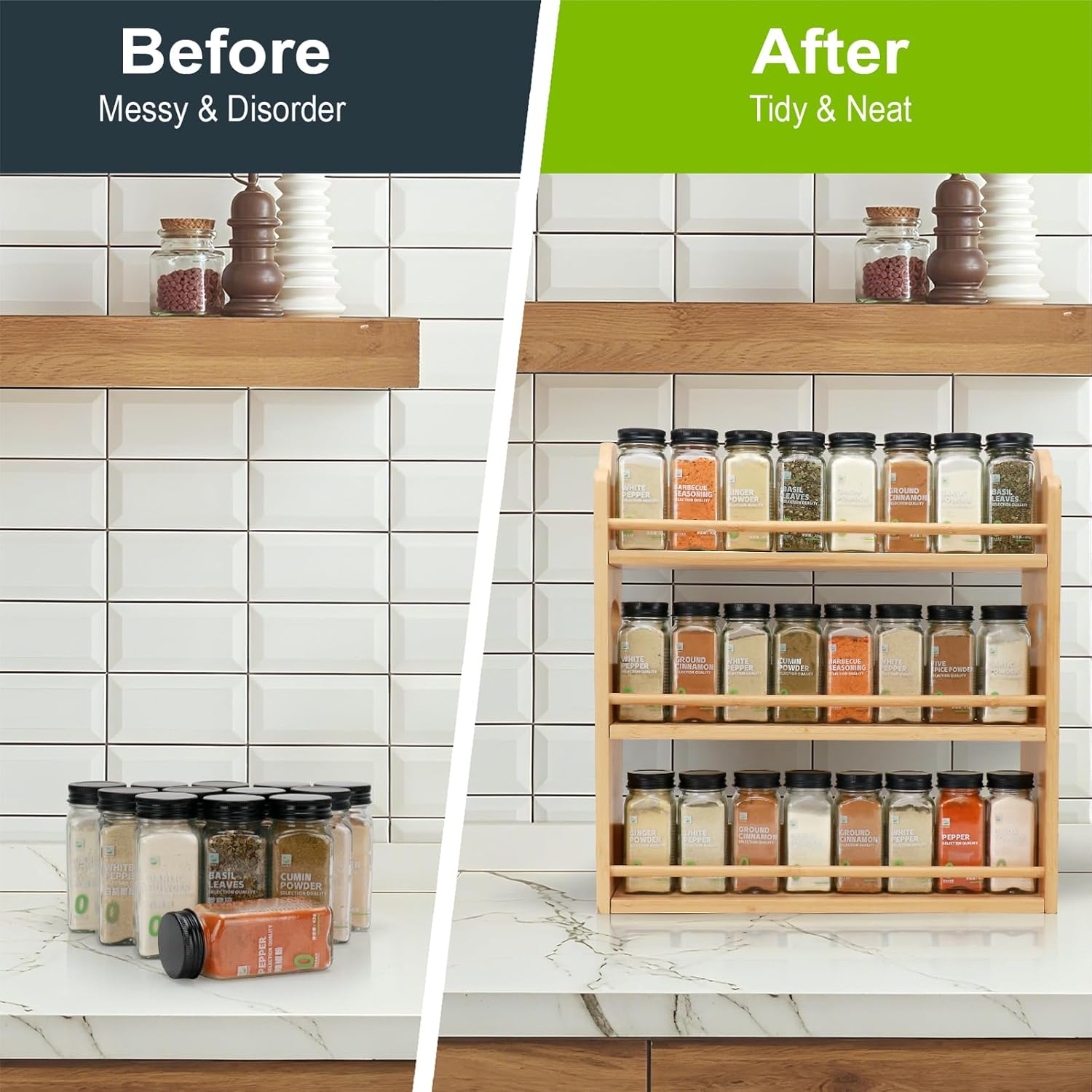 - Durable and Sturdy: The spice rack is made of naturally solid bamboo. This rack features a smooth, moisture - resistant surface. Durable and sturdy, it ensures lasting stability for reliable daily use and helps prevent scratches during assembly. Easy to maintain, simply wipe it clean with a towel. (Spice Jars Not Included)