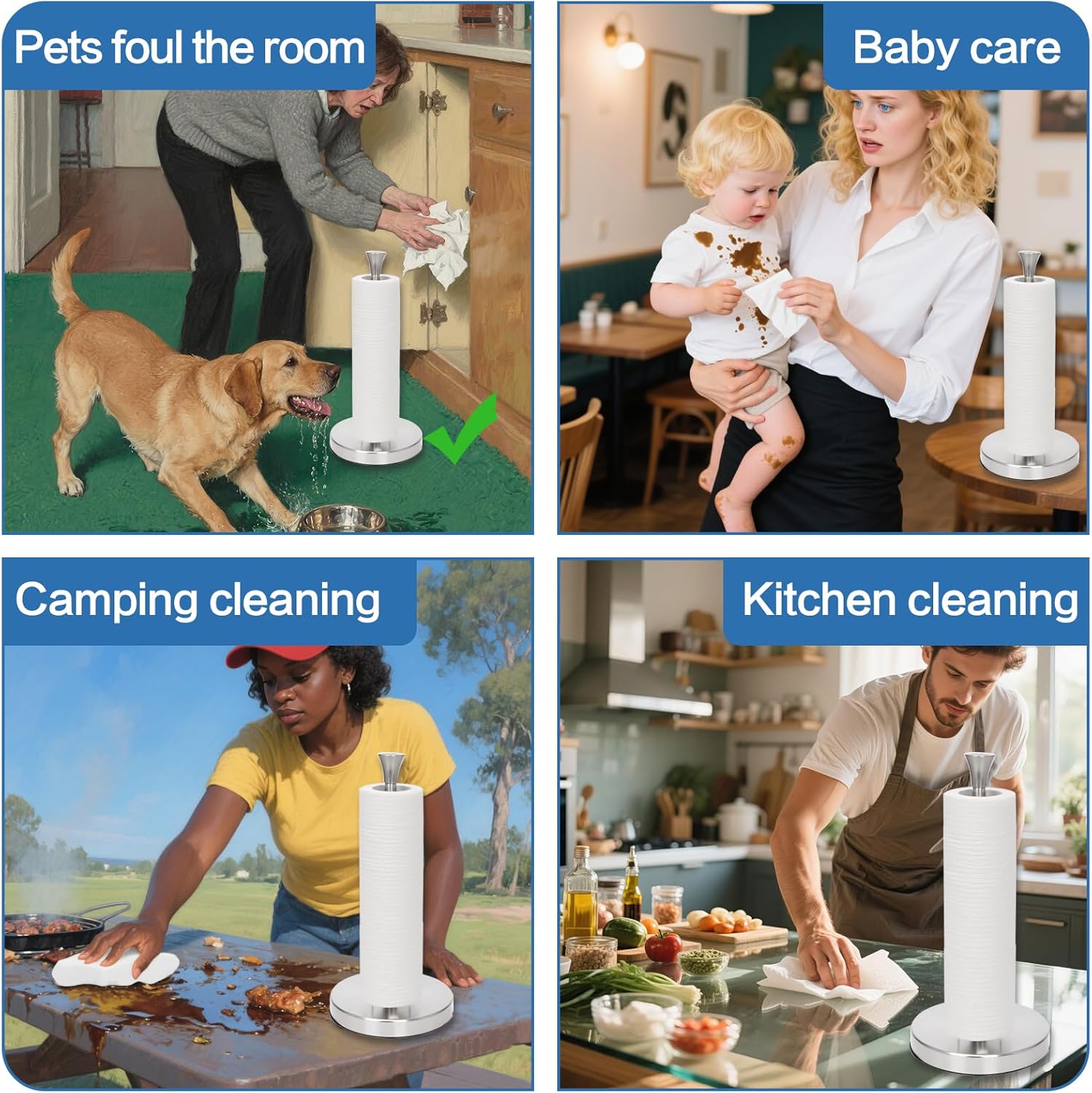 - 【No More Dancing Holder! 2.9 lbs Base Locks in Place】 Ultra-dense 2.9 lbs (1.3 kg) heavy-duty Paper Towel Holder - 30% heavier than standard weighted models (2.2 lbs) - combines with 4 industrial-strength silicone suction cups to achieve ultra-secure stability. Featuring 360° scratch-proof protection through shock-absorbing contact points, this surface-safe system adapts to granite, marble, hardwood countertops,and engineered quartz surfaces.