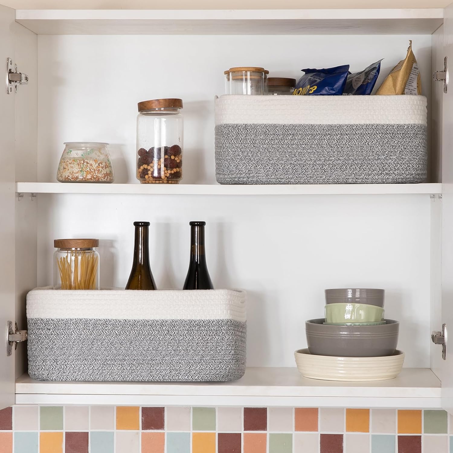 - Soft and Durable: Our shelf basket is hand-stitched from high-quality natural cotton rope that's ultra soft, durable, and baby-friendly, with no odor or sharp edges. Great for nurseries and closet organization. Seamless design, not easy to tear