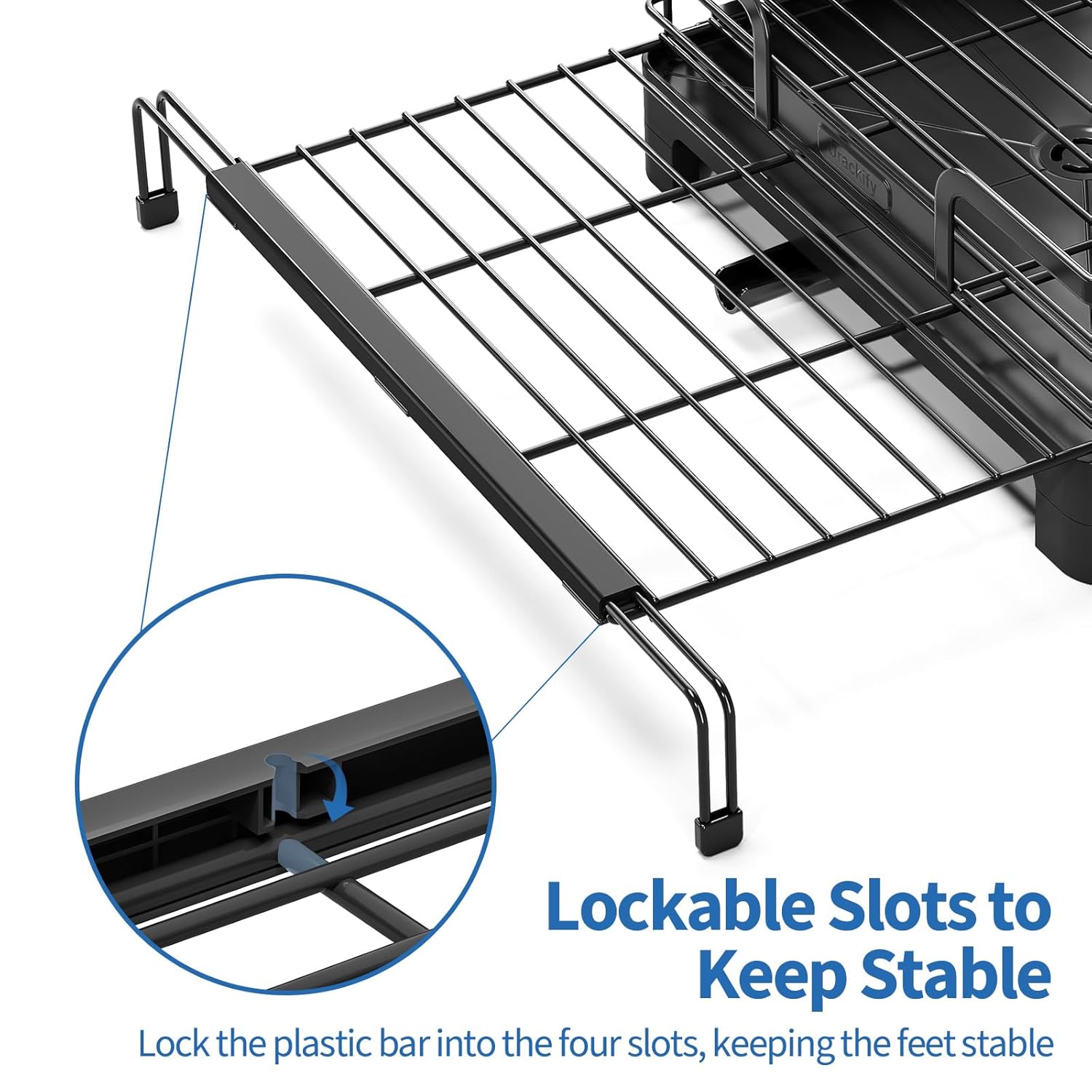 - Automatic Drainage System: TOOLF 2 tier expandable dish drainer comes with a fast-draining spout and drainboard, which are innovatively designed to avoid water accumulation and leakage, making your countertop storage always more convenient and tidy.