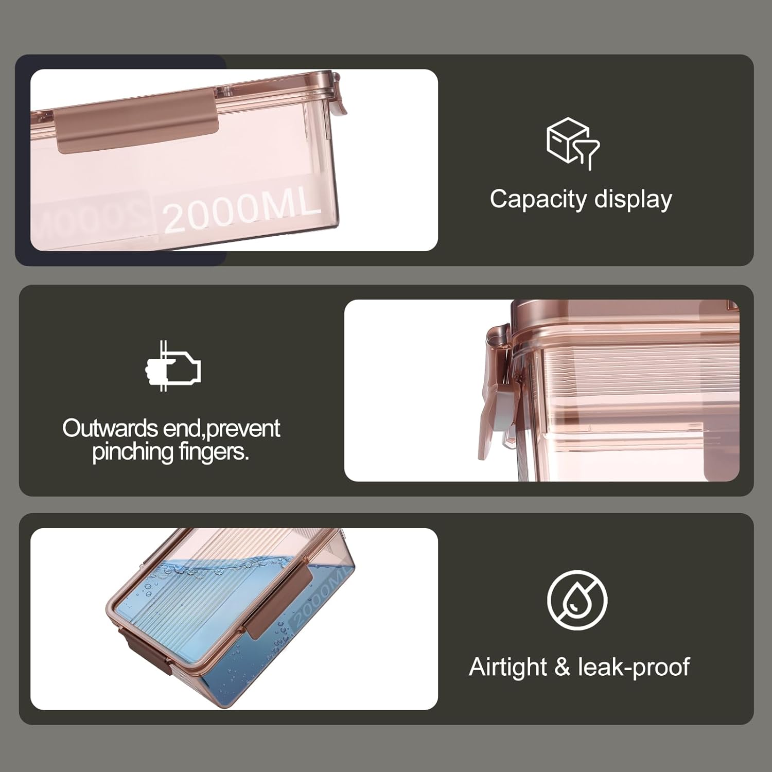 - User-Friendly: The Eclirgan freezer storage container is rectangular and nest,easy to store in cabinets and fridges. The figures on the box show the storage capacity: 500 ml (0.5 QT / 2 Cup / 16 OZ), 1000 ml (1 QT / 4 Cup / 33 OZ), and 2000 ml (2 QT / 8.4 Cup / 67 OZ), meeting different needs of use. The end of the snap lock is spread outward, easy to open.