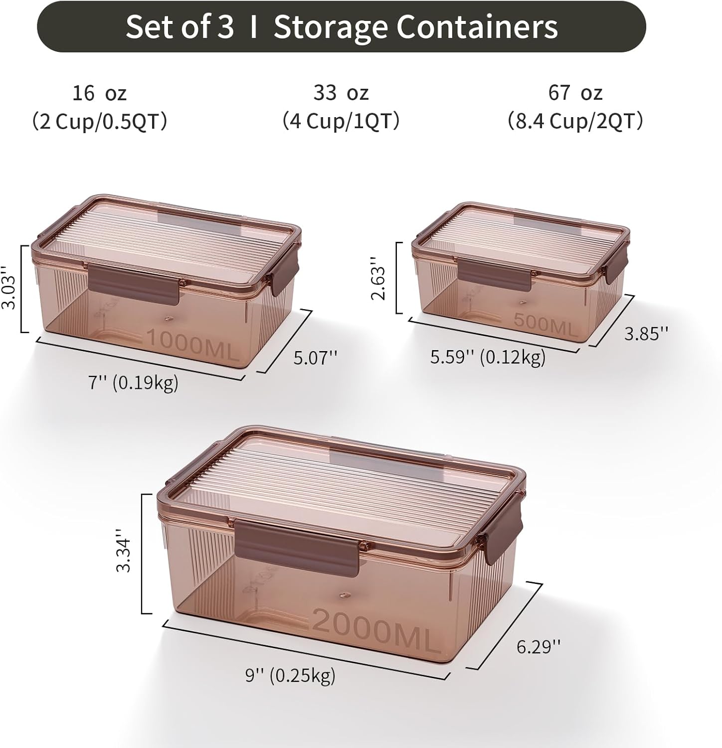 Eclirgan Freezer Storage Containers,Reusable Food Containers Set with BPA Free/Airtight,Clear Food Storage Set with Lock/Lids for Salad/Fruit(0.5/1/2 QT)