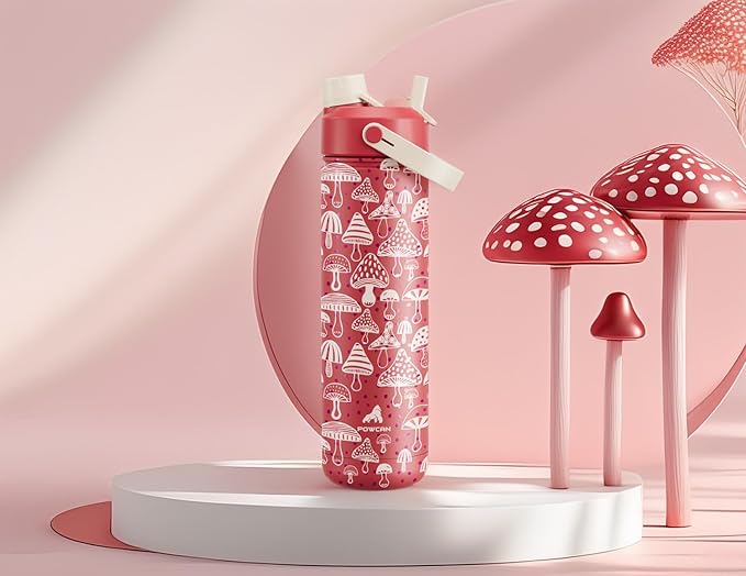 26 oz Insulated Water Bottle with 2-in-1 Straw and Spout Lid, Keep Cold 24H, Leak-Proof, Fits in Car Cup Holder, Stainless Steel Water Bottle for Sports, Travel, Gym, and School (Shroom Parade)