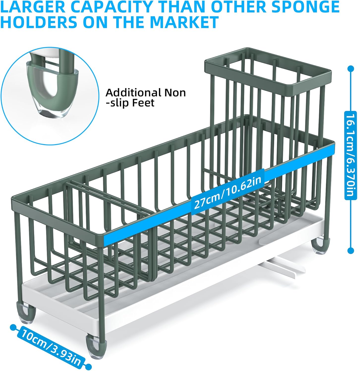 Moforoco Extra Large Sponge Holder for Kitchen Sink Organizer Caddy, Dish Brush Scrubber Holder,Stainless Steel Sink Box Utensil Holder,Soap Dispenser Set Tray Counter Accessories(Sage Green )