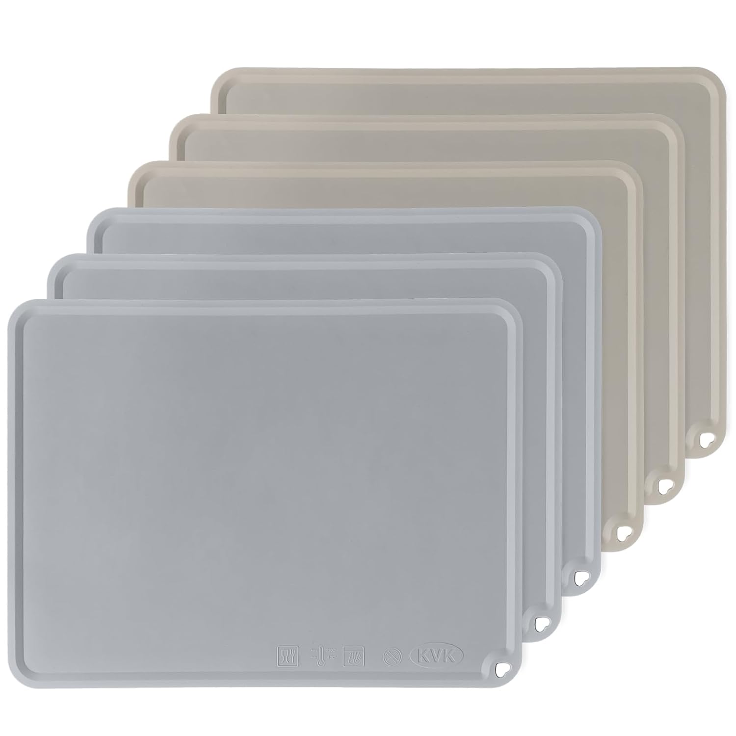 Silicone Placemats for Toddlers Thicker Version, Non-Slip Reusable Kids Placemats for Dining Table, Stain-Proof Baby Table Mat for Restaurants 6 Packs (Light Gray&Beige)