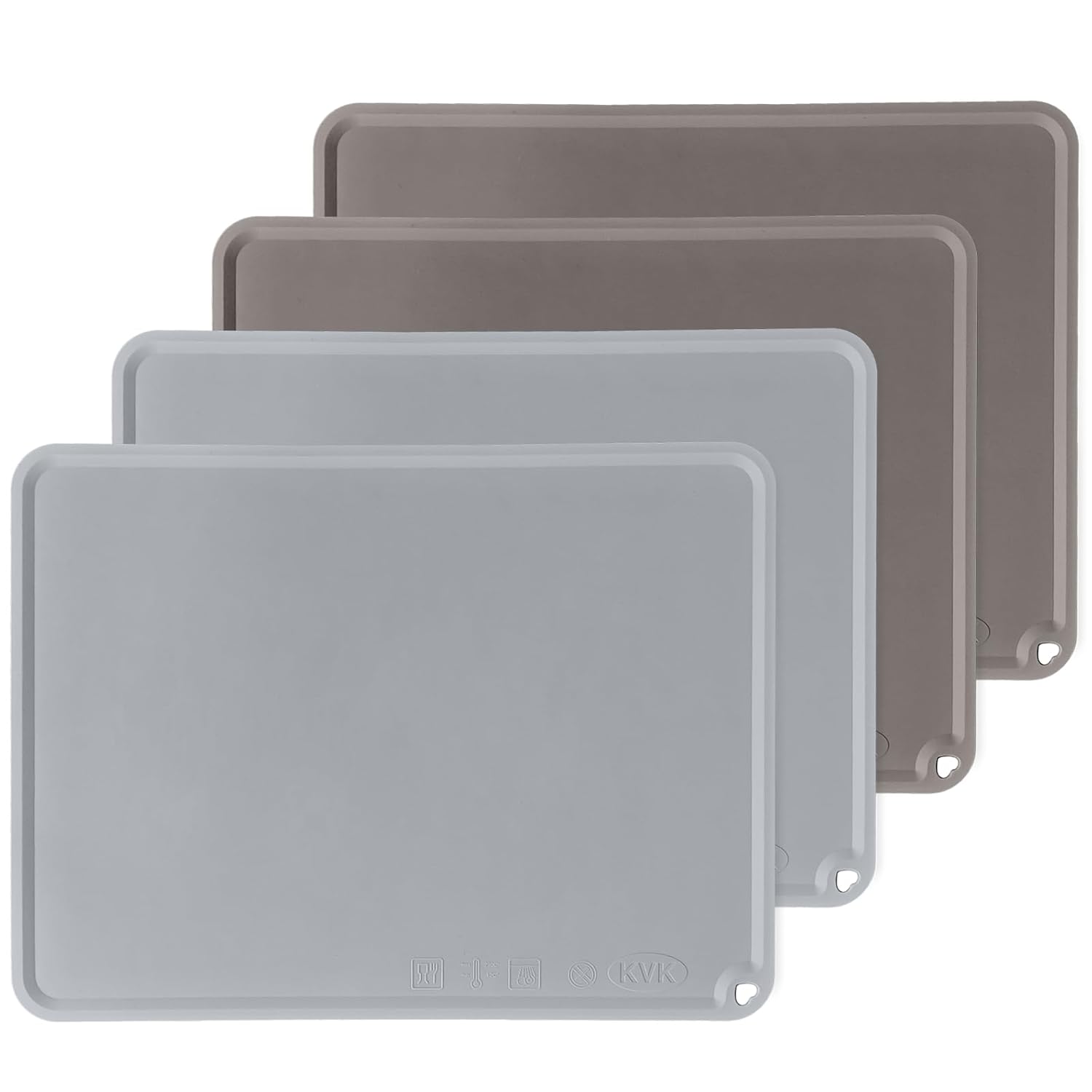 Silicone Placemats for Toddlers Thicker Version, Non-Slip Reusable Kids Placemats for Dining Table, Stain-Proof Baby Table Mat for Restaurants 4 Packs (Light Gray&Dark Gray)