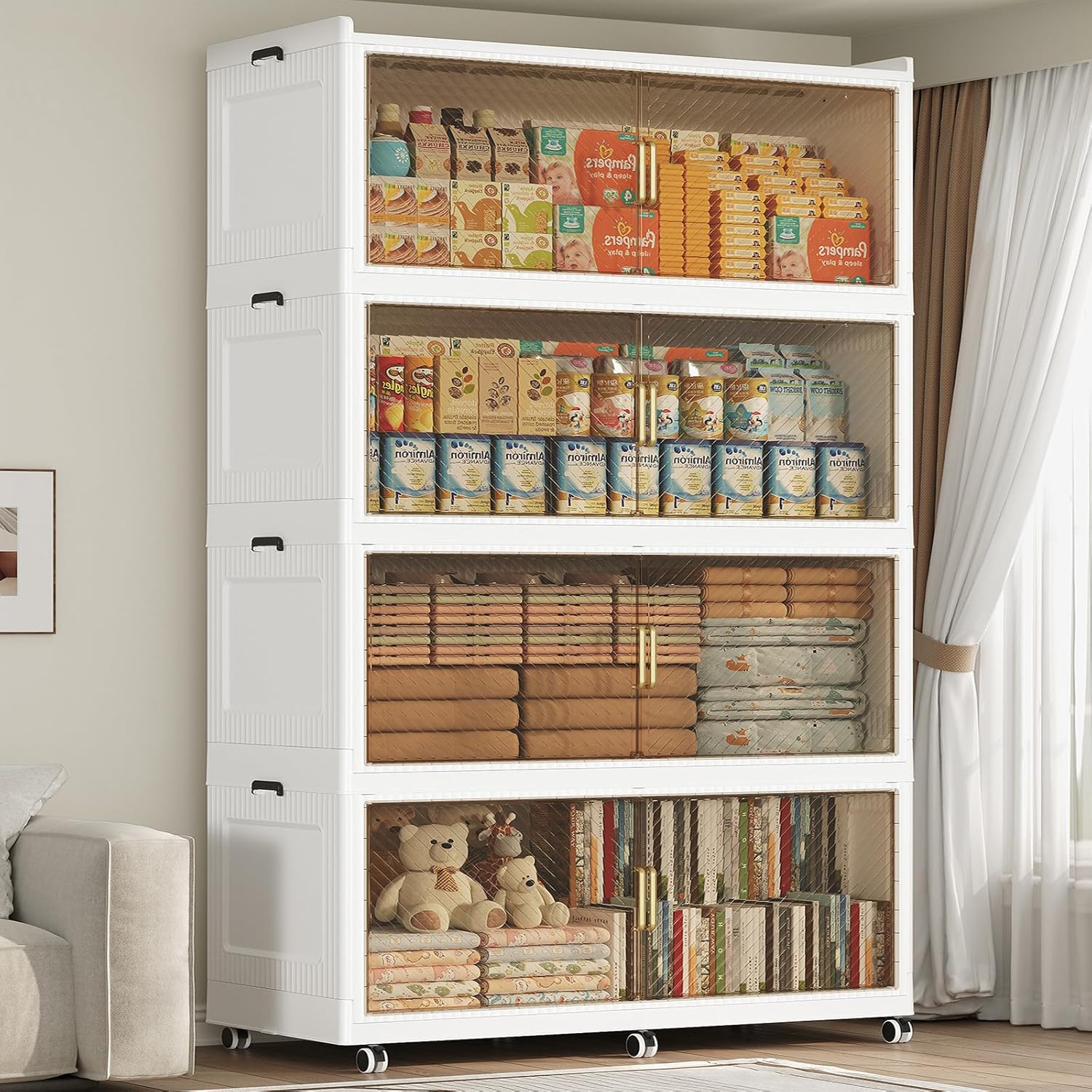 - 【Foldable, Stackable, Quick Assembly】Our large plastic storage bins can be quickly unfolded or collapsed in just 3 minutes to maximize space utilization. It can be stacked layer by layer into a cabinet, with side buckles to secure each level in place, preventing tipping or scattering. An essential large storage cabinet for homes and dorms.