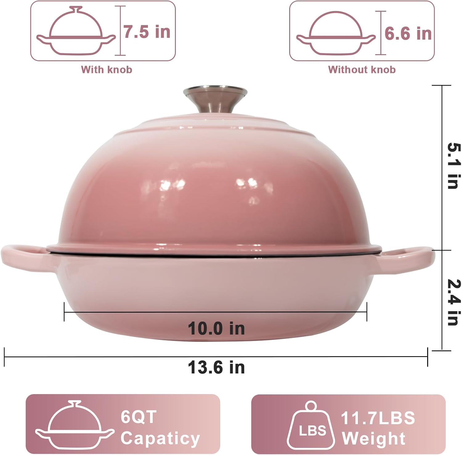 - PROFESSIONAL BREAD BAKING EXPERIENCE: Achieve artisan-quality sourdough and crusty loaves with our 6QT cast iron bread oven and included banneton basket. The traditional dome design traps steam naturally, while easy-to-follow recipes help beginners and experts master homemade bread.