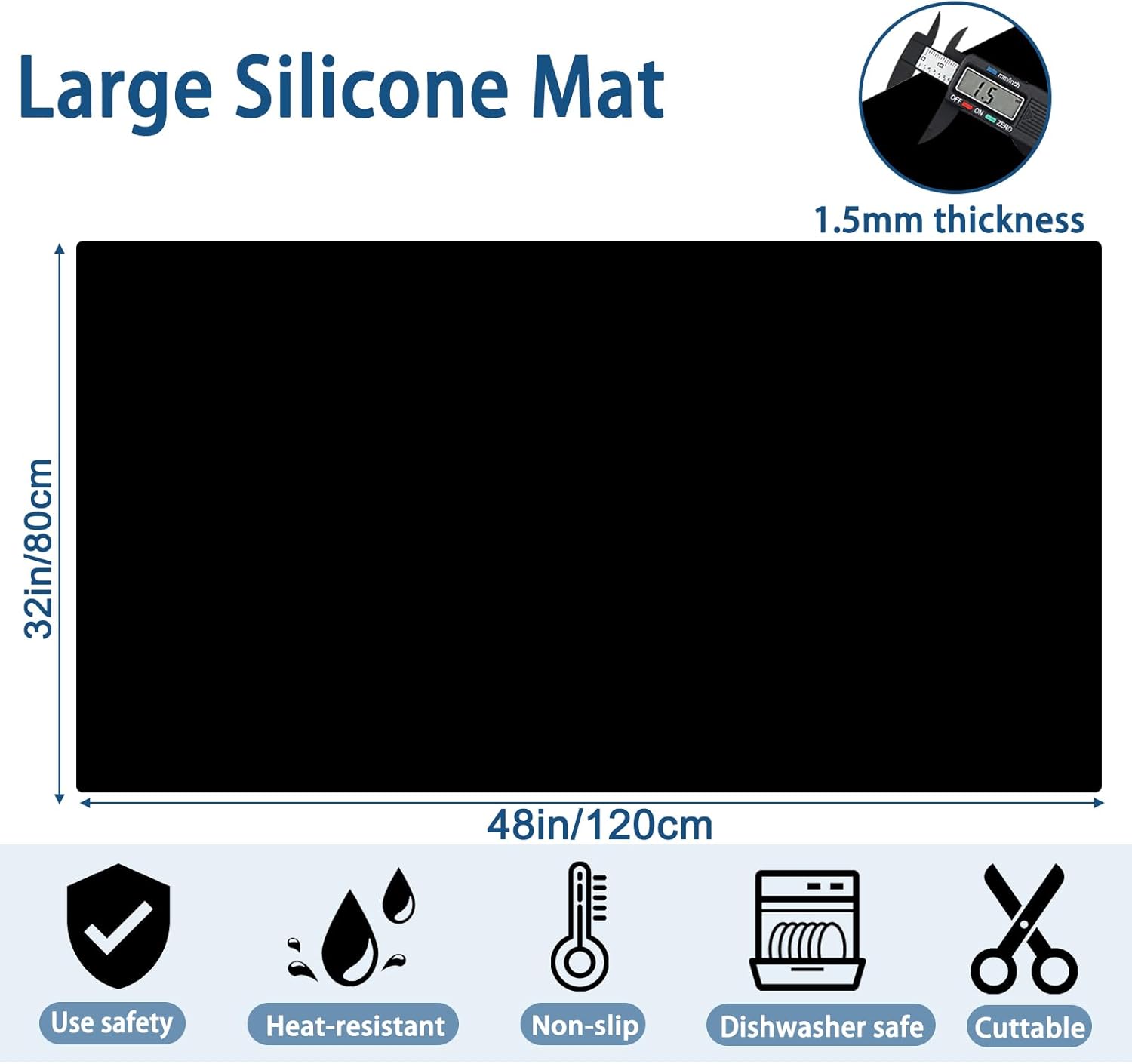 - Extra Large & Thickened: The size of the silicone mat is 48"x32"(120cmx80cm). The thickened design makes it have better protection and not easy to tear up.