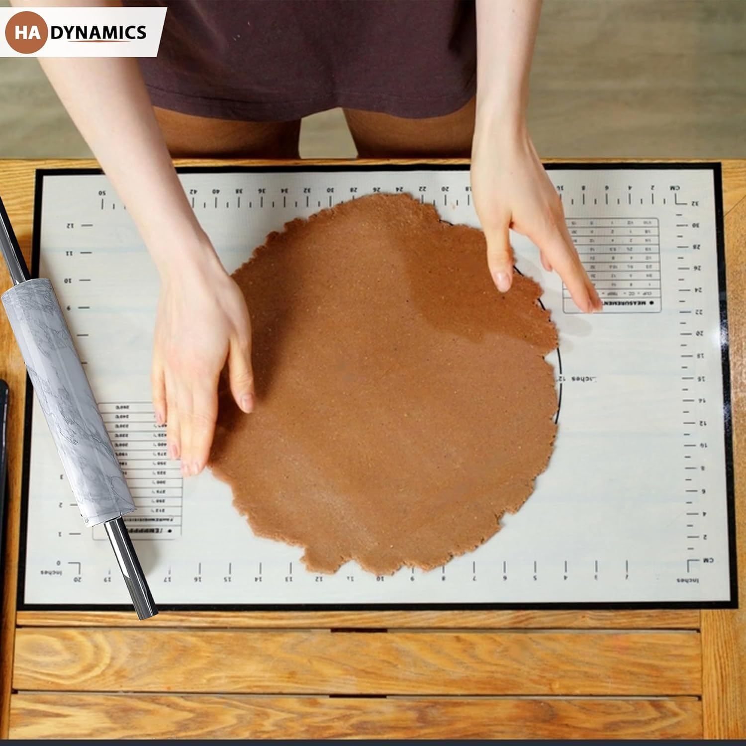 - Non-Slip Silicone Baking Mat: Our roller pin set comes complete with a non-slip silicone pastry mat featuring convenient ruler markings. This mat provides a slip-resistant surface for rolling out dough, while the measurements help you achieve the perfect size and thickness for your recipes.