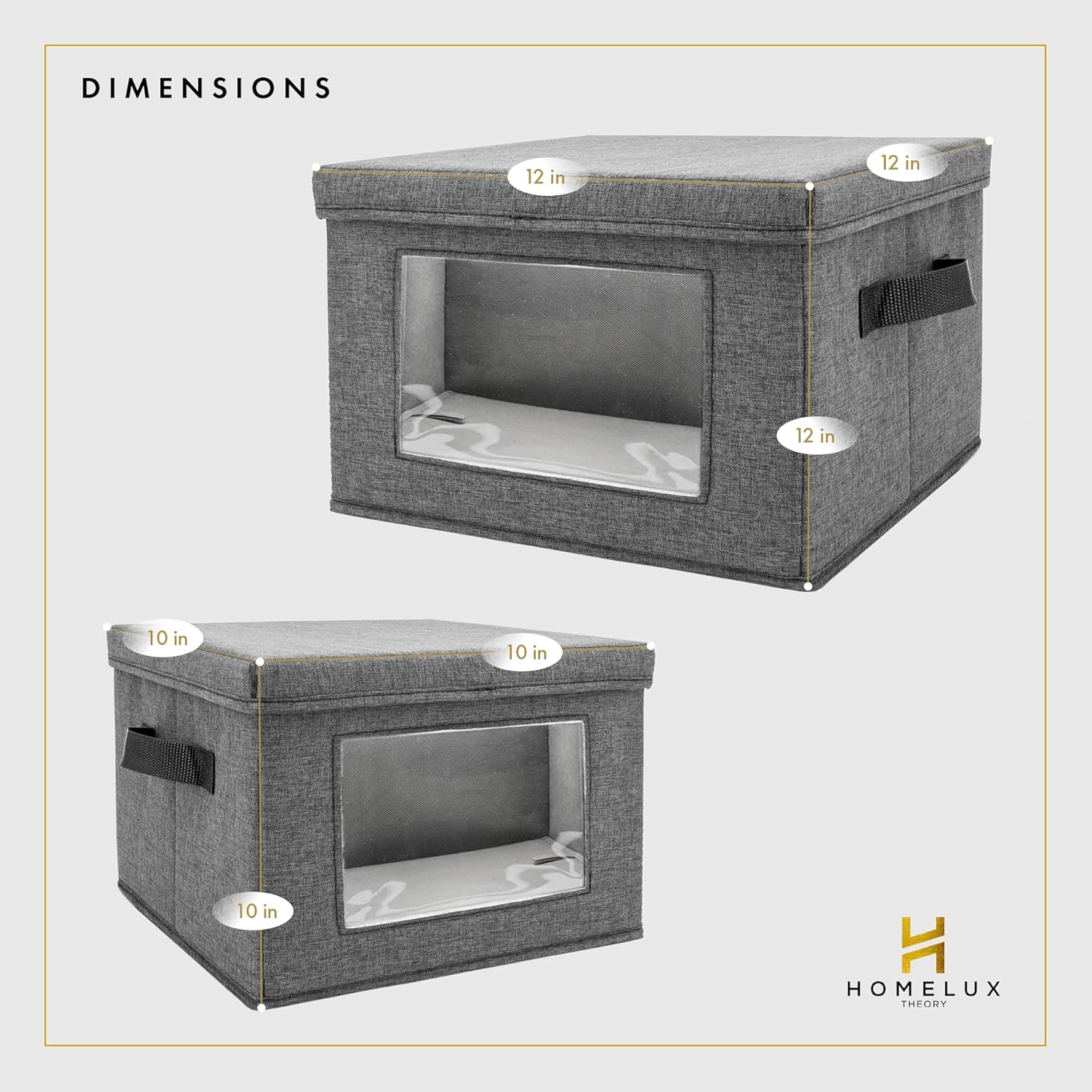 - Comprehensive 12 Light Gray inches Plate Storage: Homelux Theory's China Storage Containers & storage bins with lids are a durable and versatile solution to ensure that your delicate dishware stands the test of time. In this 2-piece set of storage for china dinnerware sets with dimensions 12"x8", each dish storage have 15 felt pads and 2 sturdy handles, providing protection for your dinnerware. Preserve the pristine condition of your cherished dishes with this fine china storage solution.