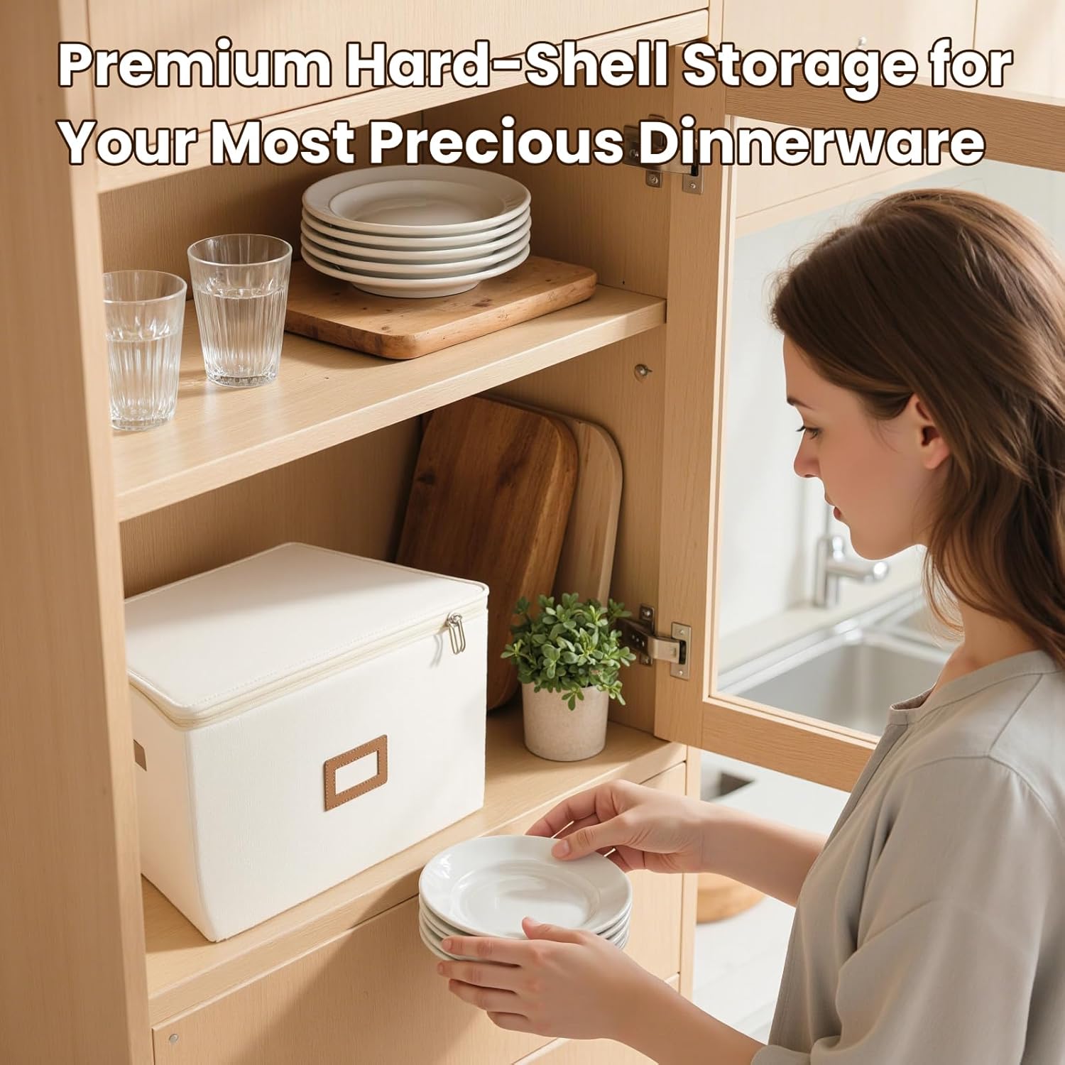 - Ultra-Thick Hard Shell for All Surfaces: Featuring an extra thick hardcover, our fine china storage containers & storage bins with lids are safe to stack, optimizing space without compromising the protection of your dinnerwares, mugs, and delicate items. Homelux Theory's dishes storage containers & mug box have a hard shell on every surface, INCLUDING THE TOP COVER, & a 30% increase in shell thickness making them indispensable china storage hard container & a must have for moving plates.