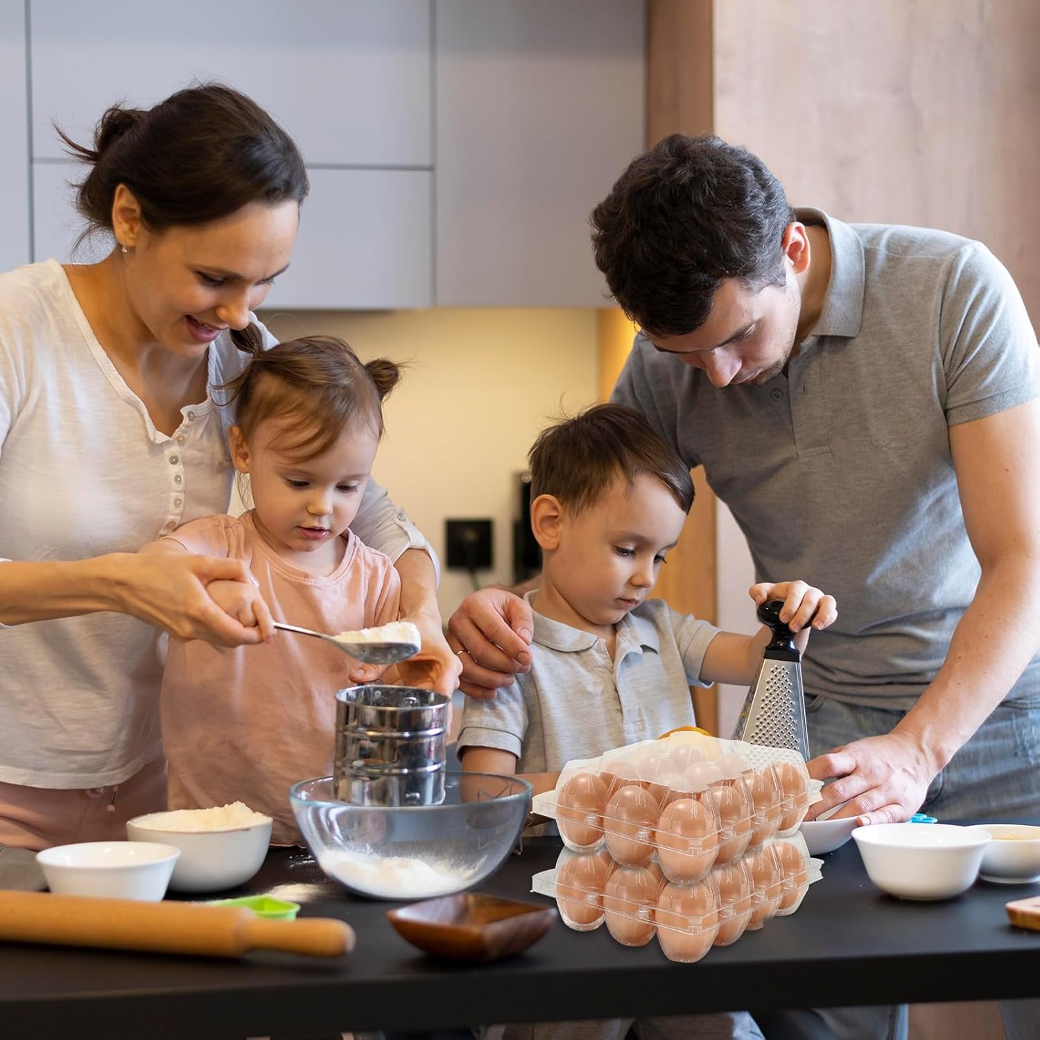 - CLASSIC DESIGN: The egg cartons adopt transparent design, allowing quick identification of eggs, and the stackable shape saves space in the refrigerator or during transportation, making it ideal for egg packaging
