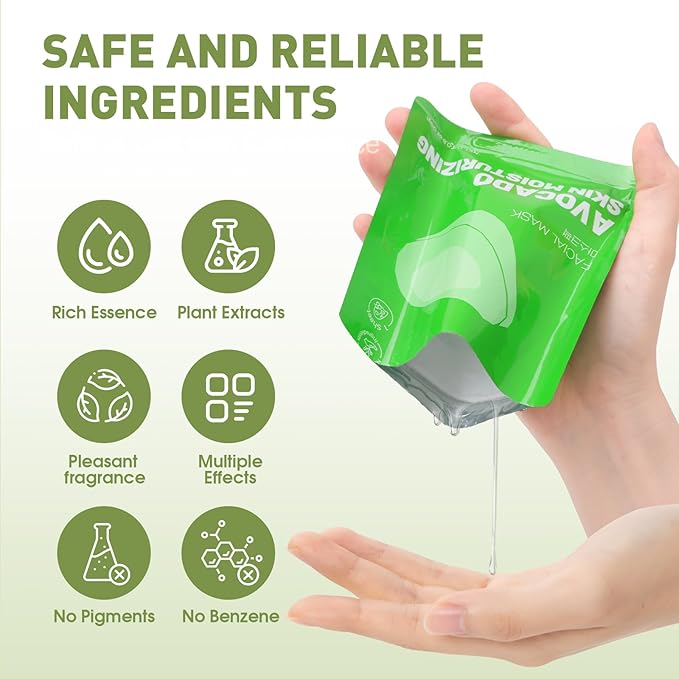 • 【How to Use Face Masks】1.Take out the facial mask,remove the covering film on one side,2.Clean your face and cover your face,3.Relax and leave on skin for 15-20 minutes,4.Remove the mask,gently massage the face and wash with water
