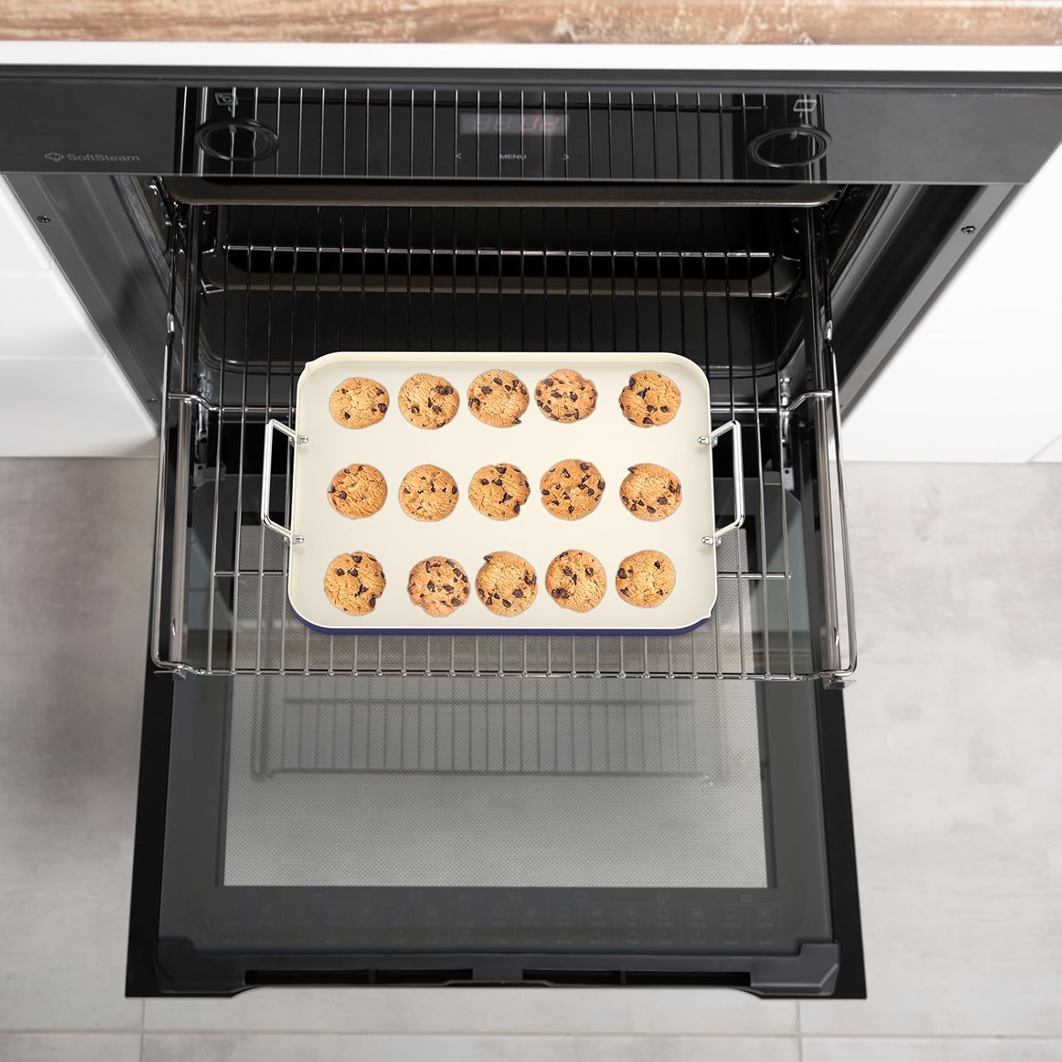 17.7" x 13" Burner Griddle Pan for Stove Top Oven, Stainless Steel Handles, Non Stick Ceramic Griddle Pan Griddle Skillet, PTFE Free PFOA Free, Blue