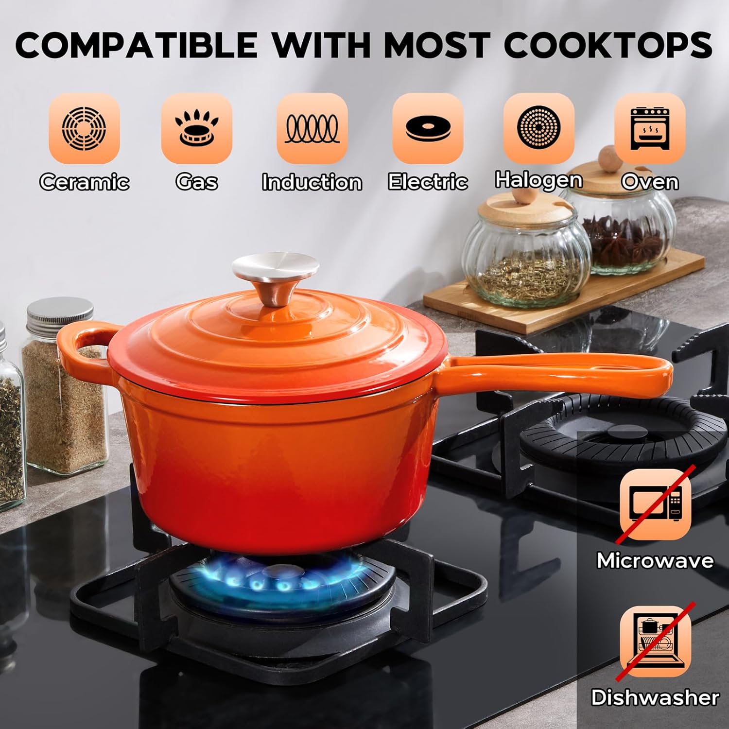 2 Quart Saucepan with Lid, Onader Enameled Cast Iron Sauce Pan, Small Cooking Sauce Pot, Enamel Dutch Oven Pot Nonstick – Sunset Orange