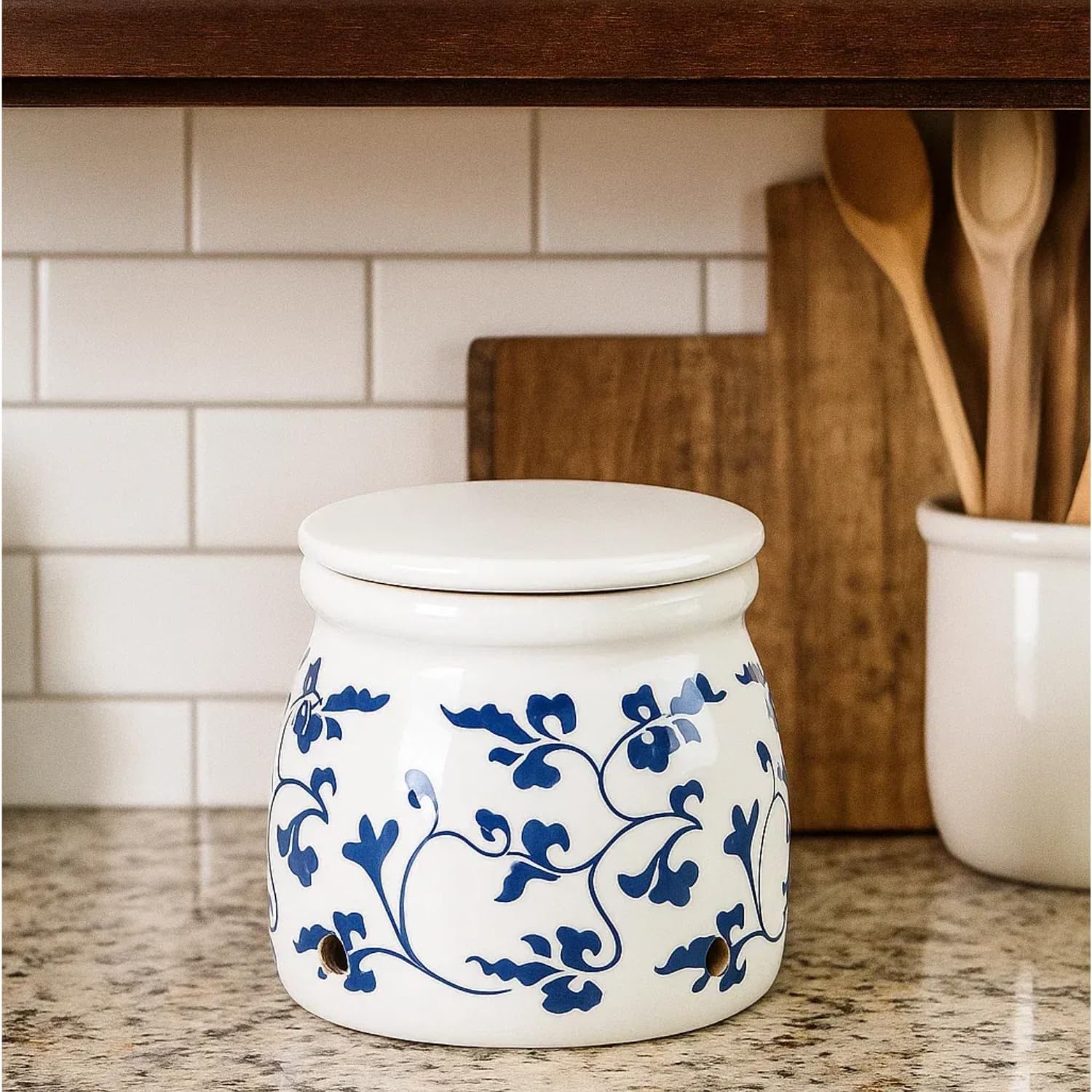 - STORAGE CAPACITY: Perfectly sized ceramic container holds multiple heads of garlic while maintaining proper airflow for extended shelf life