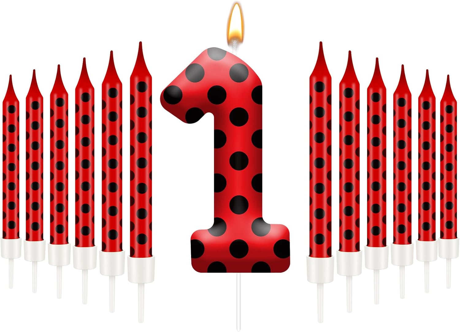 - Vibrant Ladybug Design: You will receive 12PCS and 1 number 1 Ladybug themed birthday candles AXBMM Ladybug Theme Birthday Candles feature bold red and black polka dots. These candles burn cleanly and evenly, adding whimsical charm to any ladybug-themed party or celebration