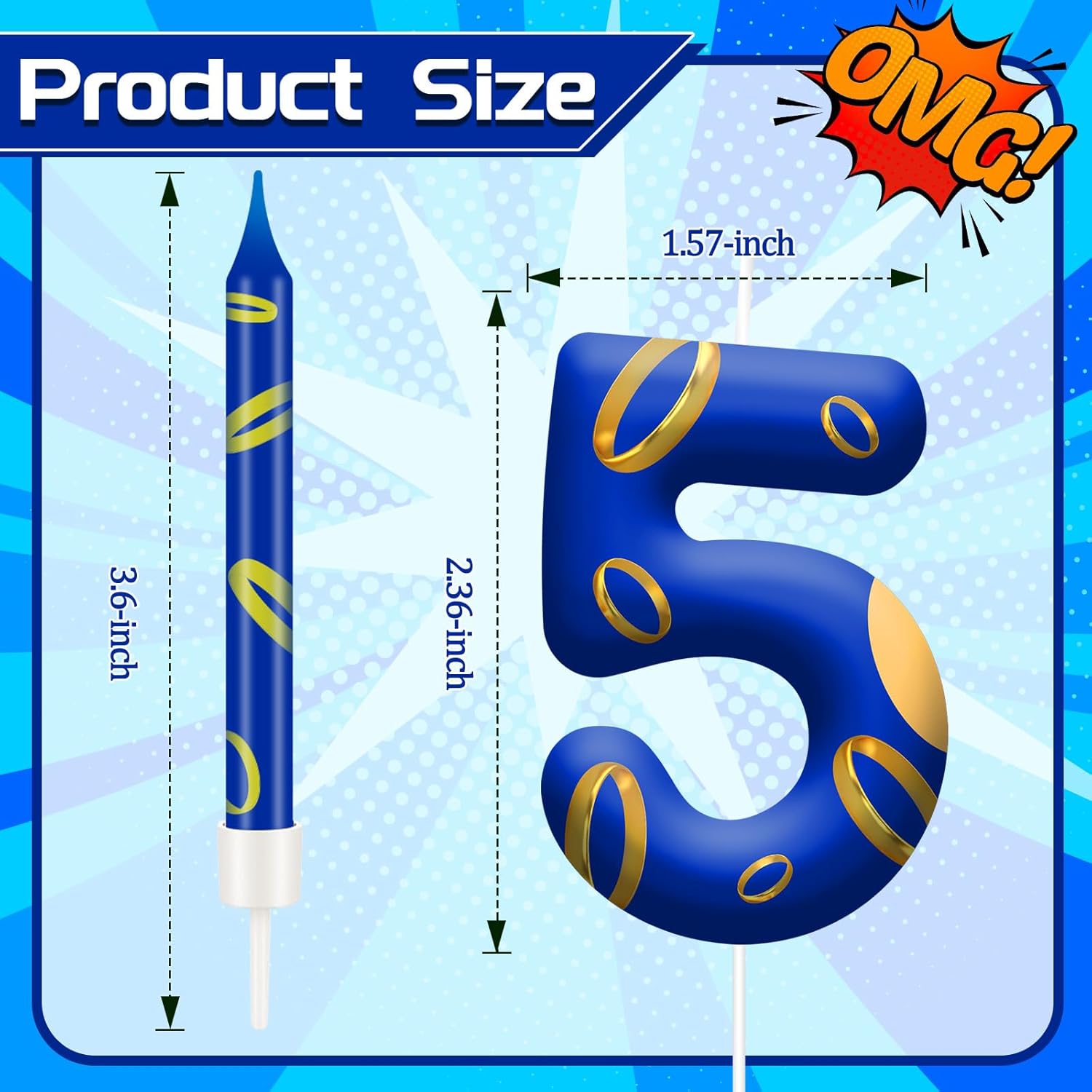 13PCS Birthday Cake Candles Set - Blue and Golden Ring Number Candles with Vibrant Designs for Boys & Girls, Theme Birthday Party Decorations, Cake Toppers for Theme Parties(Number 5)