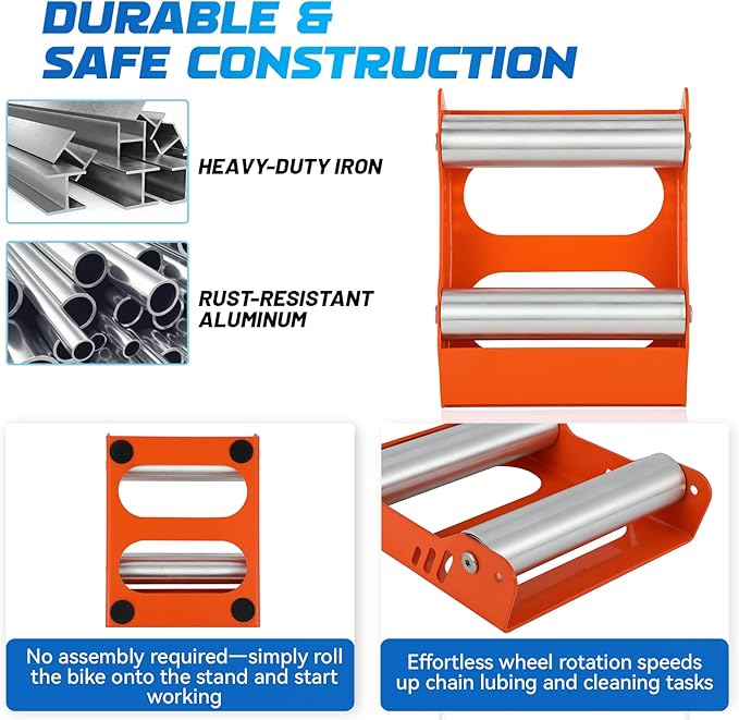 Motorcycle Wheel Cleaning Stand Universal Wheel Roller Stand for Tire Cleaning & Chain Lubrication Heavy Duty Paddock Stand for Street Bike (Motorcycle < 700 LB & Tire Width <260 mm) Orange