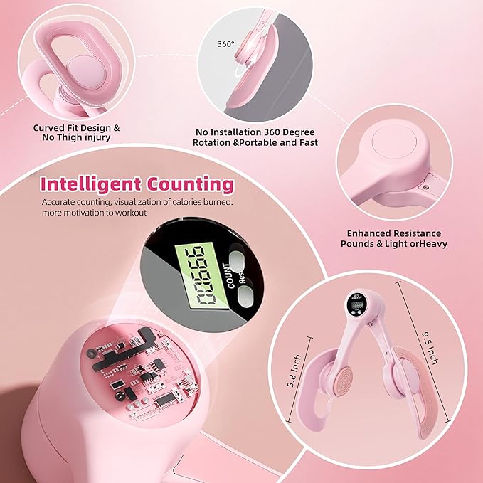 • Smart Counting: Our inner thigh exerciser has a digital counter monitors exercise count and time to better follow the plan for pelvic floor muscle exercise, allows you to have a good idea of your training completion.When you stop exercising, the counting will also automatically pause, and when you resume your workout, it will automatically start to counting again.