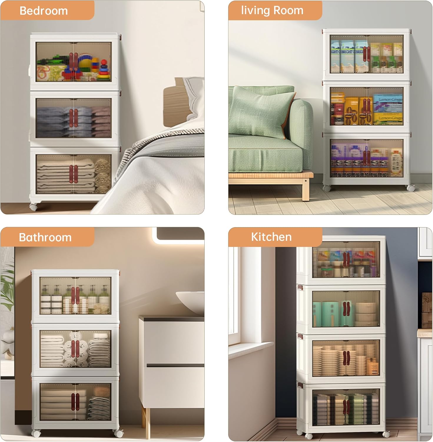 - PACKAGE INCLUDE: Set of 3 stackable storage bins with lids, each featuring convenient doors for easy access. Great for organizing your home, bedroom, or living room while maximizing space and efficiency.