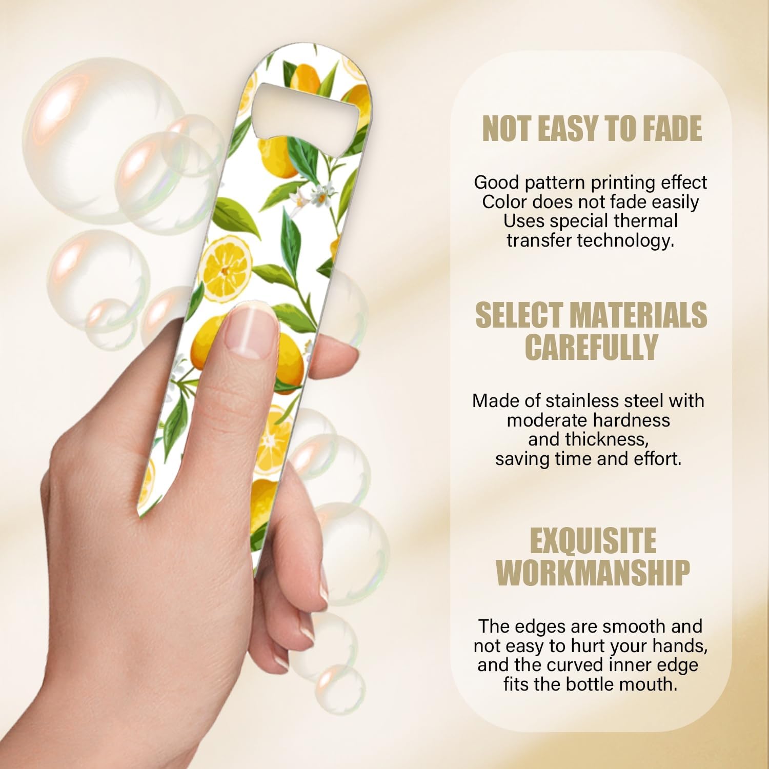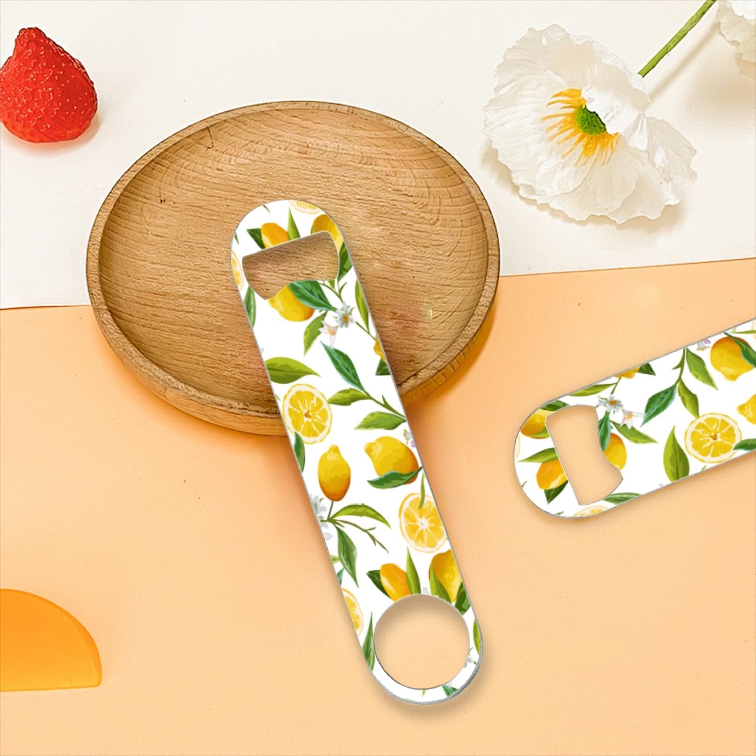 2 PACK Beer Bottle Opener, Stainless Steel Flat Bottle Openers,7 inch Metal Decor,Lemon With Flowers