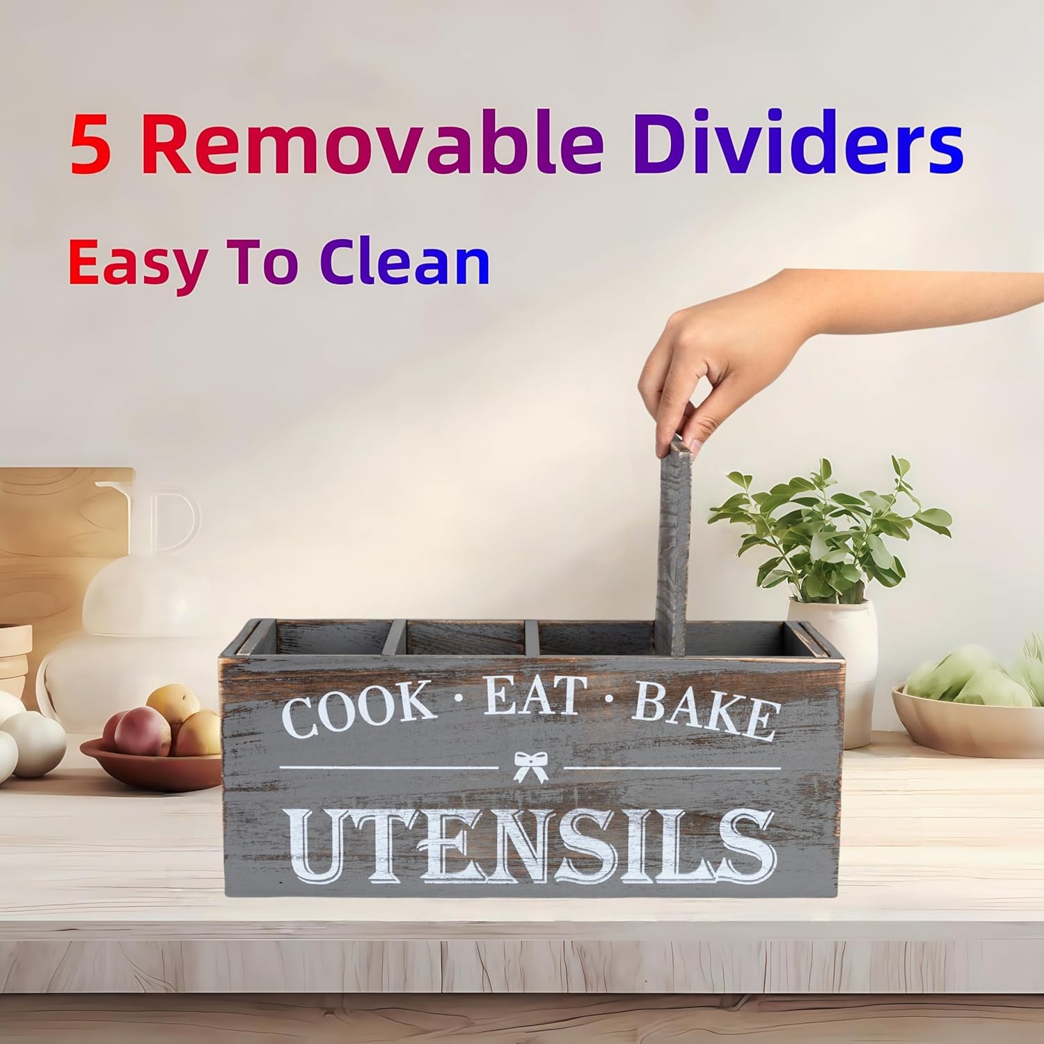 - Durability & Ease of Care: Made from robust wood, this utensil holder is built to last, withstanding daily use and the test of time. The smooth, finished surface is easy to clean; simply wipe with a damp cloth to maintain its beautiful appearance.
