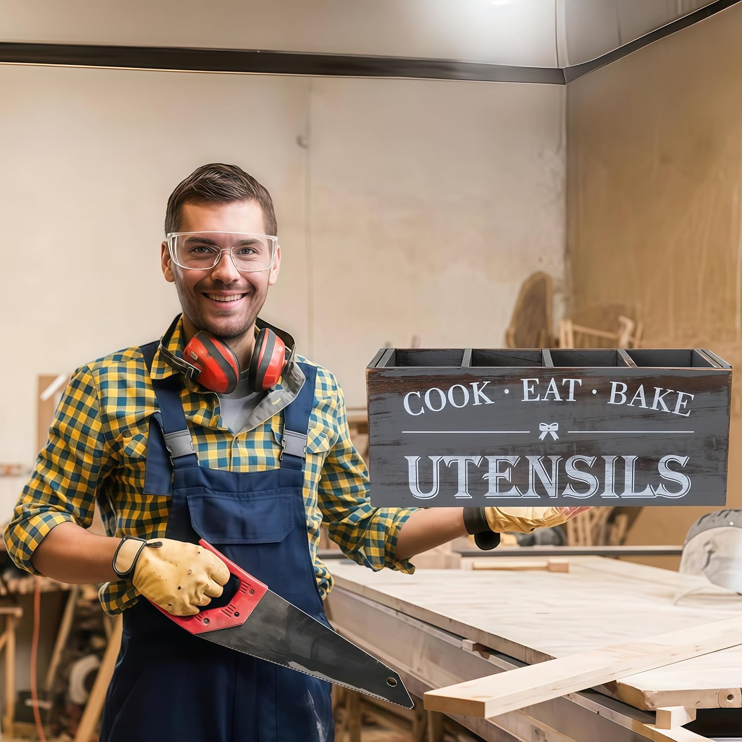 - Versatile Use: The versatility of our wooden utensil holder makes it perfect for a multitude of settings. Use it in the kitchen to keep your cooking tools organized, on the dining table to hold condiments and napkin rings, or even in the office to store pens, scissors, and other desk essentials. Its sleek, neutral aesthetic ensures it blends seamlessly into any environment.