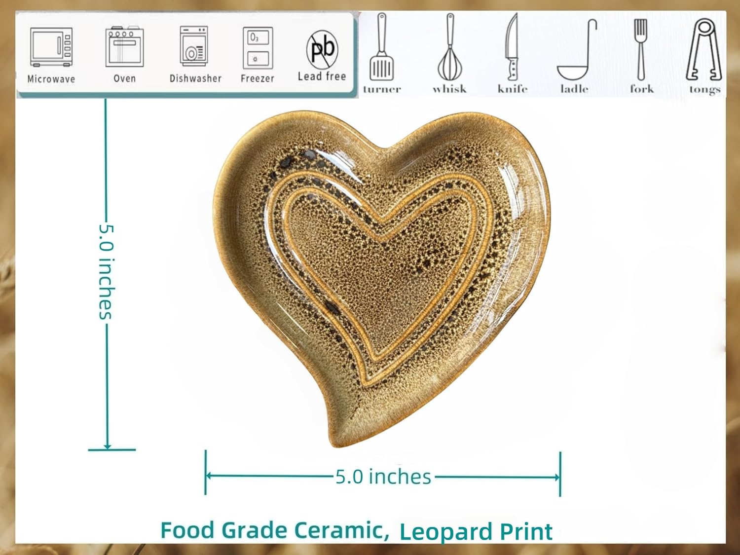 Ceramic Spoon Rest for Stove Top, Heart Cute Spoon Rest for Kitchen Counter, Cooking Spoon Holder for Kitchen Counter, Utensil Rest Spatula Rest Ladle Holder Tong Rest (Retro Leopard Print)