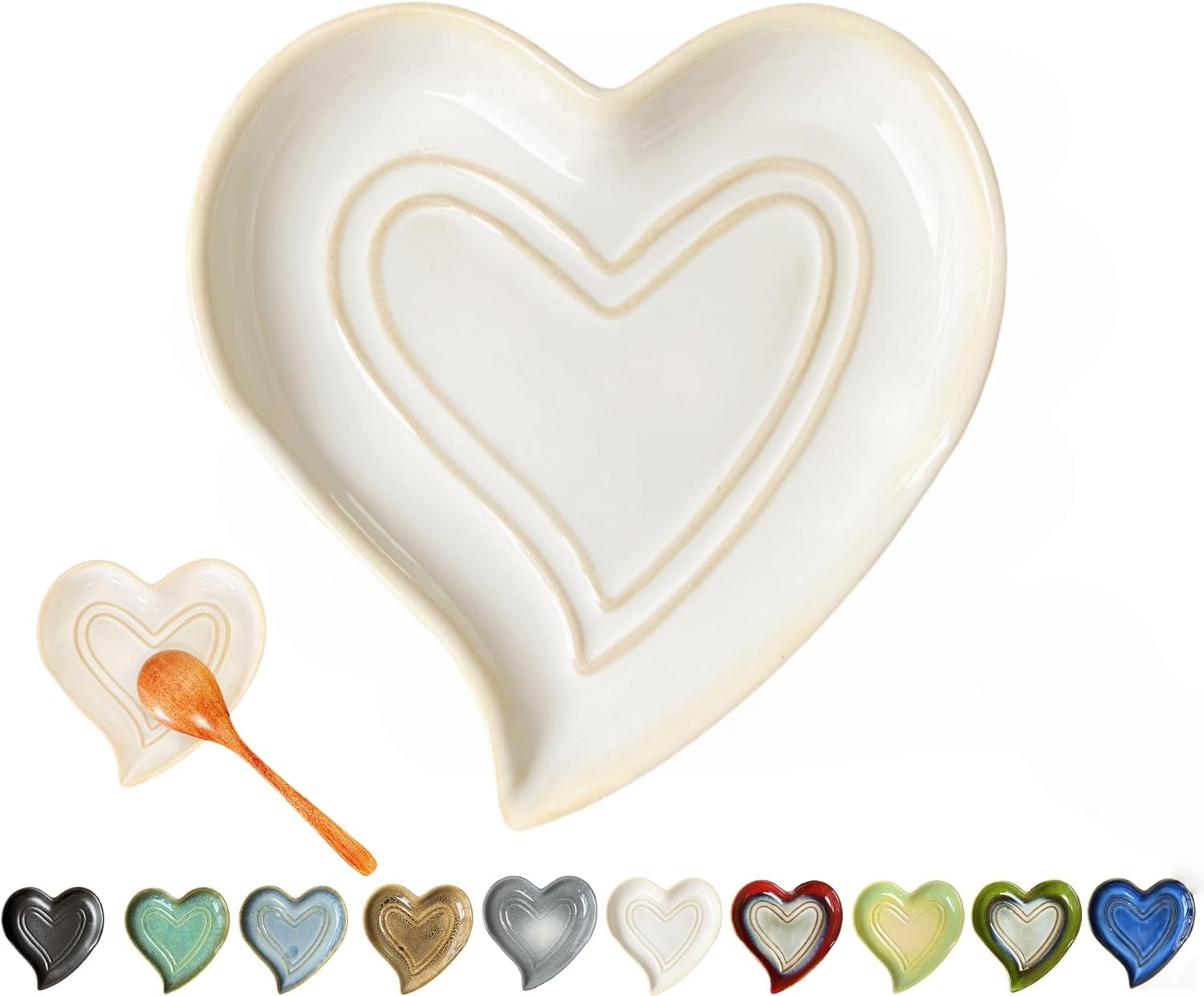 - 💕 【Designed and Decorative】: The ceramic spoon rest for stove top is heart shaped. The unique designed spoon rest cute is perfect addition and decoration to your kitchen counter, stove top, coffee bar and dinning room.