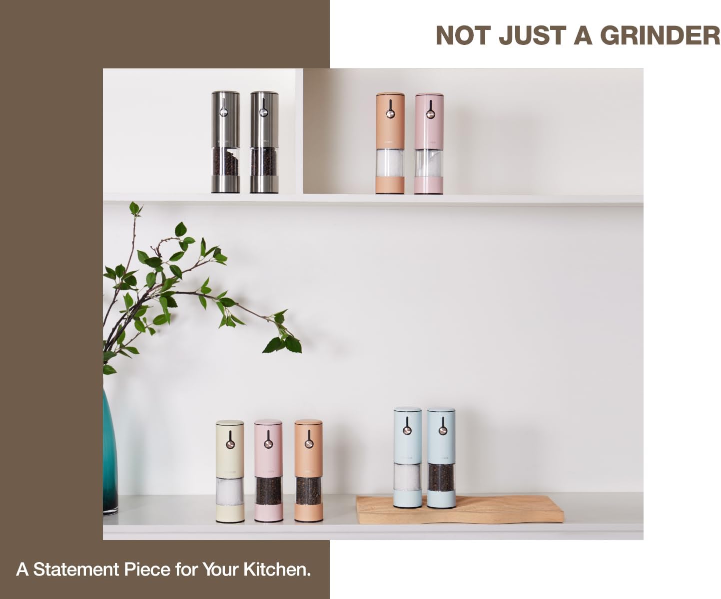 - USB-C Rechargeable Pepper Grinder Dual LED Light Salt Mill Corrosion-proof ceramic gears.