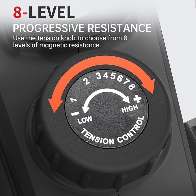 • 💌【Senior-Friendly & Easy to Use】No assembly required! The large anti-slip pedals and ergonomic design cater to seniors and those with limited mobility. The 8-speed manual adjustment lets you control intensity effortlessly, no remote needed, just simple controls.