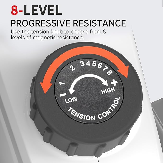 • 💌【Senior-Friendly & Easy to Use】No assembly required! The large anti-slip pedals and ergonomic design cater to seniors and those with limited mobility. The 8-speed manual adjustment lets you control intensity effortlessly, no remote needed, just simple controls.
