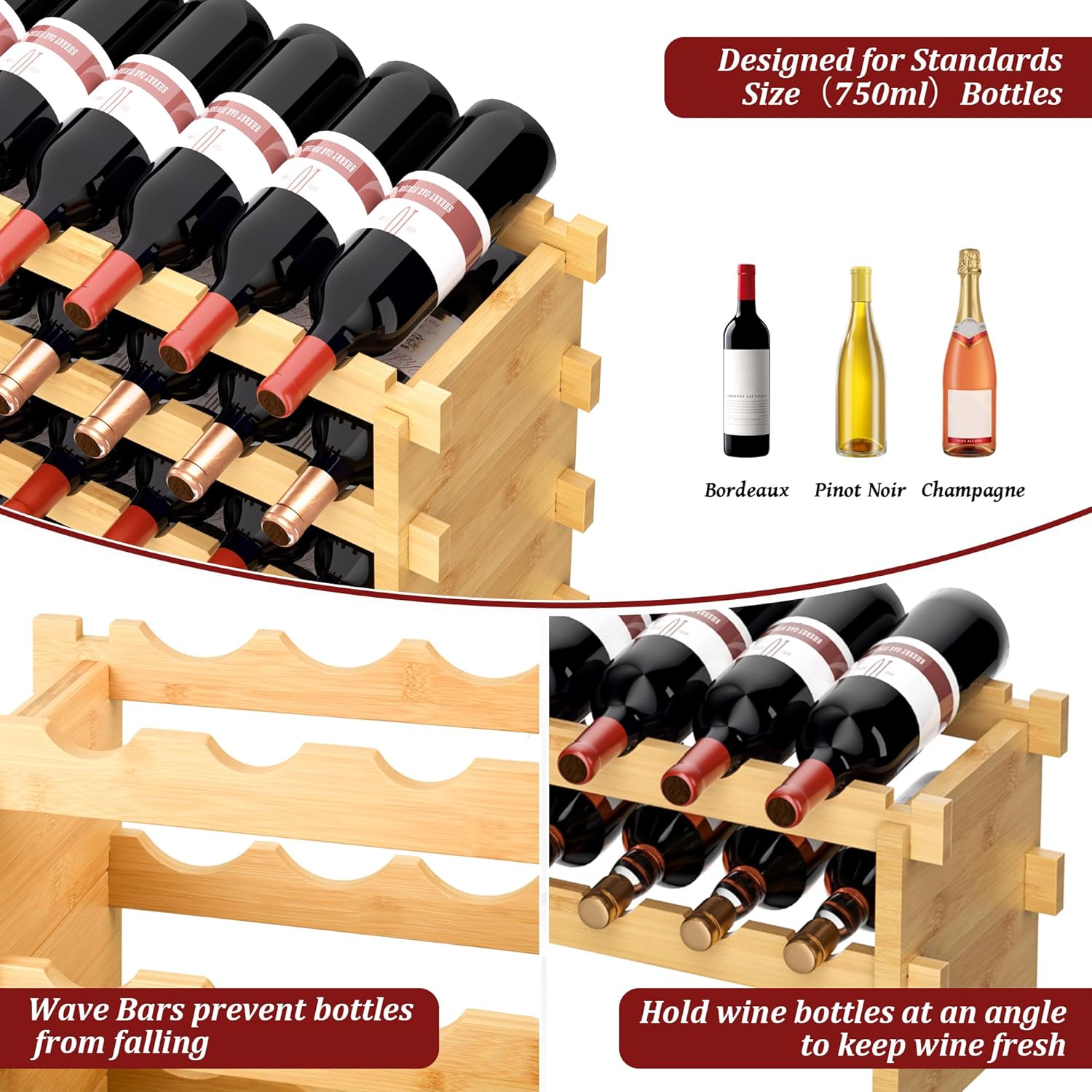 - Stackable Wine Rack for 72 Bottles: This stackable modular wine rack measures approximately 33.5 W x 9.9 D x 40.6 H inches, accommodating up to 72 bottles with 8 tiers and 9 bottles per layer. Its flexible design fits seamlessly into kitchens, dining rooms, or wine cellars. Ideal as a thoughtful gift for wine enthusiasts and collectors.
