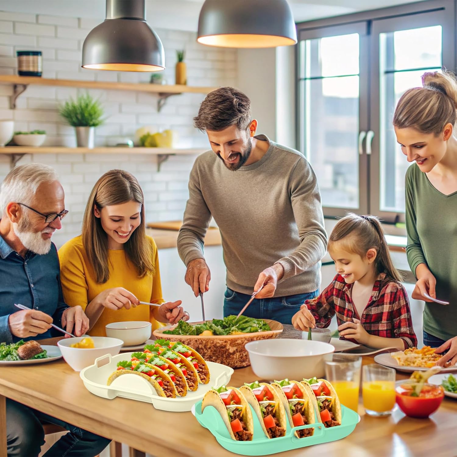 - Mexican Taco Meals: silicone Taco holder plates are here to securely hold tacos standing upright and stable, making it easier than ever to fill, serve, and enjoy your tacos; This set of 2 taco plates is a game-changer, no more spills or tacos tipping over, and say goodbye to tacos soaking in sauce