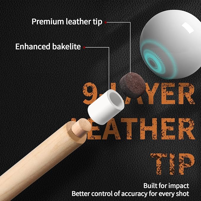 • Premium 4-Layer Leather Tip: Multi-pressed premium leather withstands daily play. Delivers consistent feedback on every shot. Perfect upgrade for pool cues