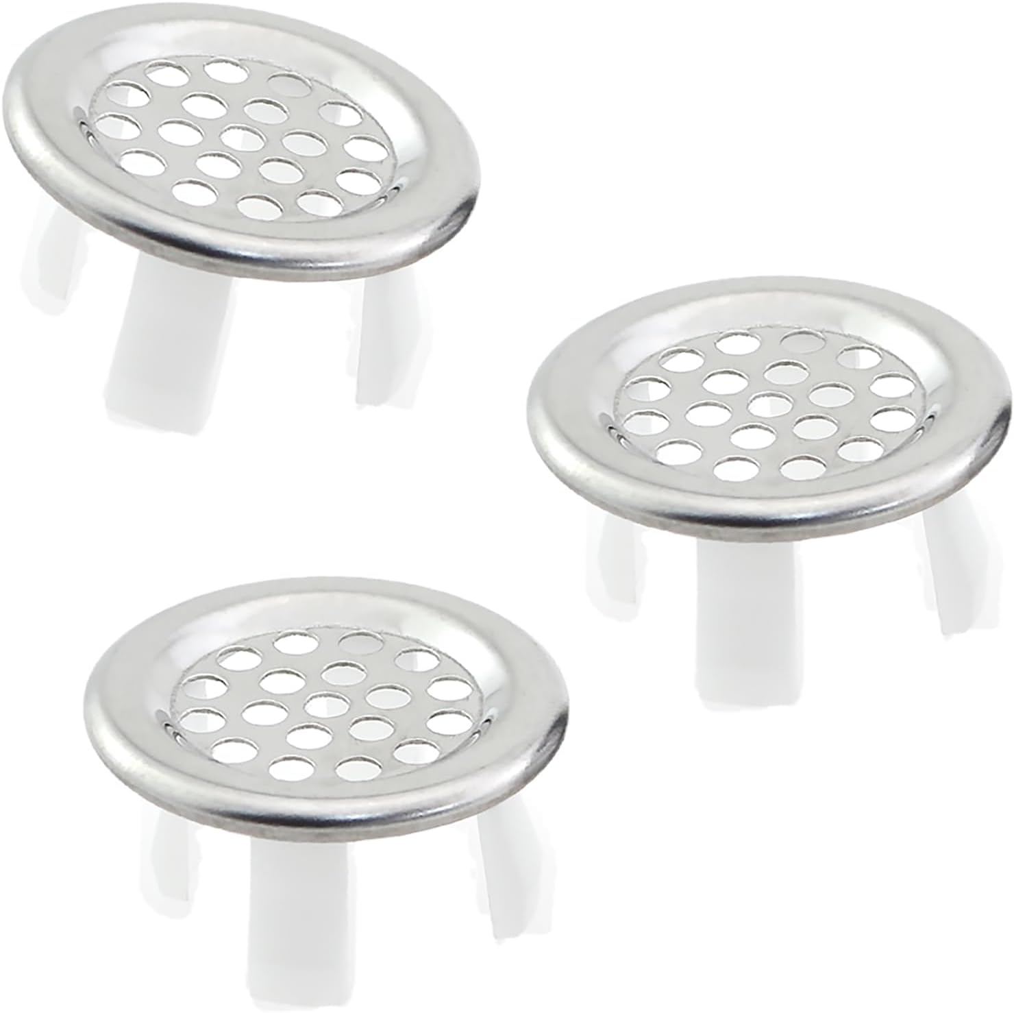 2PCS Kitchen Sink Drain Silver Stainless Steel Basin Overflow Decorative Cover 22-24mm Hole Inside Diameter Insertion Cap