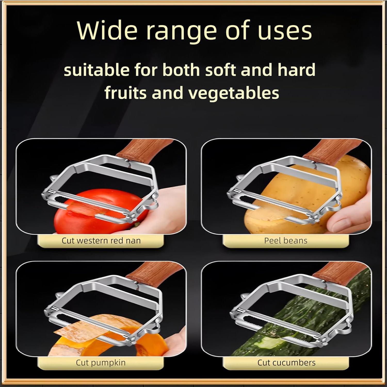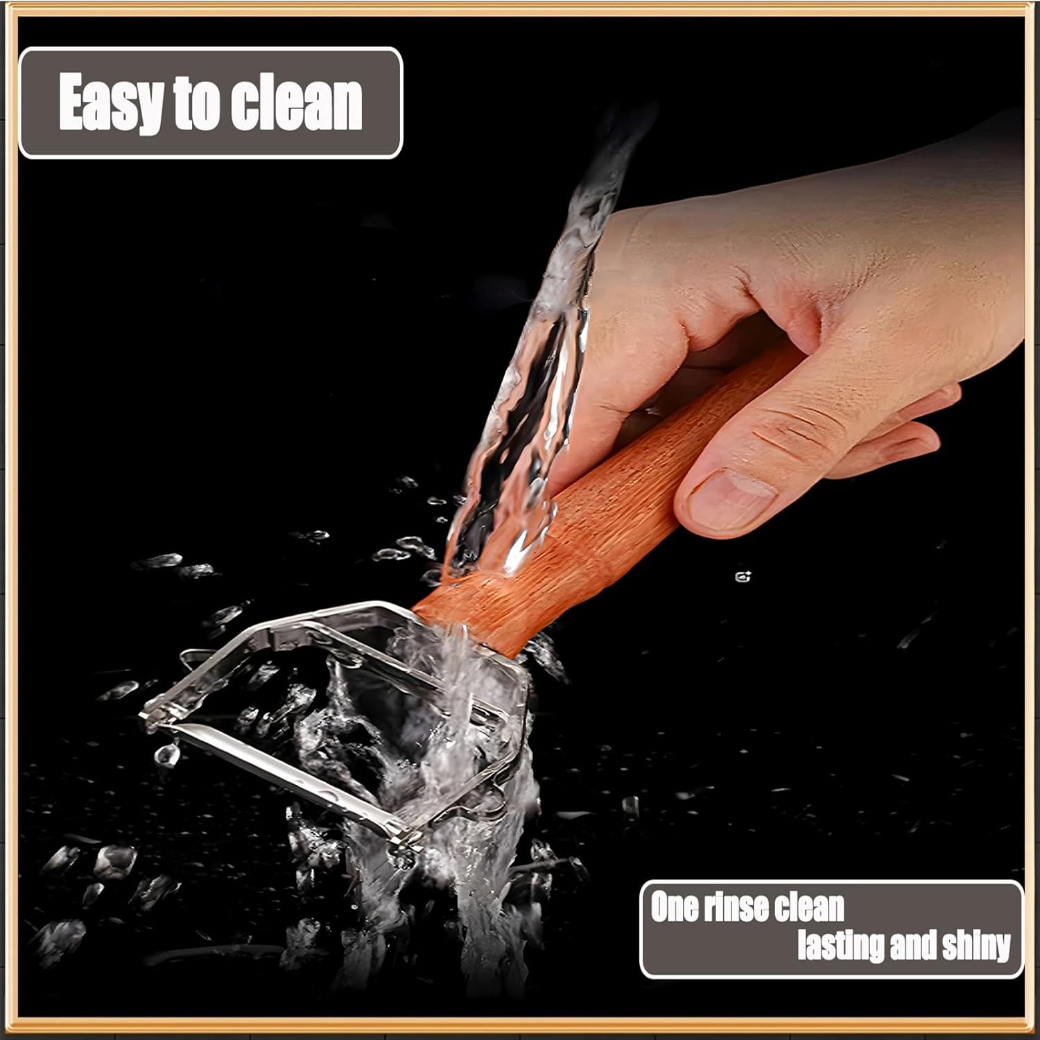 - Comfortable Grip for All Users:Built with a premium stainless steel blade and ergonomic non-slip wood handle for comfort and sturdiness. This kitchen peeler tool is labor-saving, rust-resistant, accommodating both right and left-handed individualsand designed for long-lasting use in any kitchen