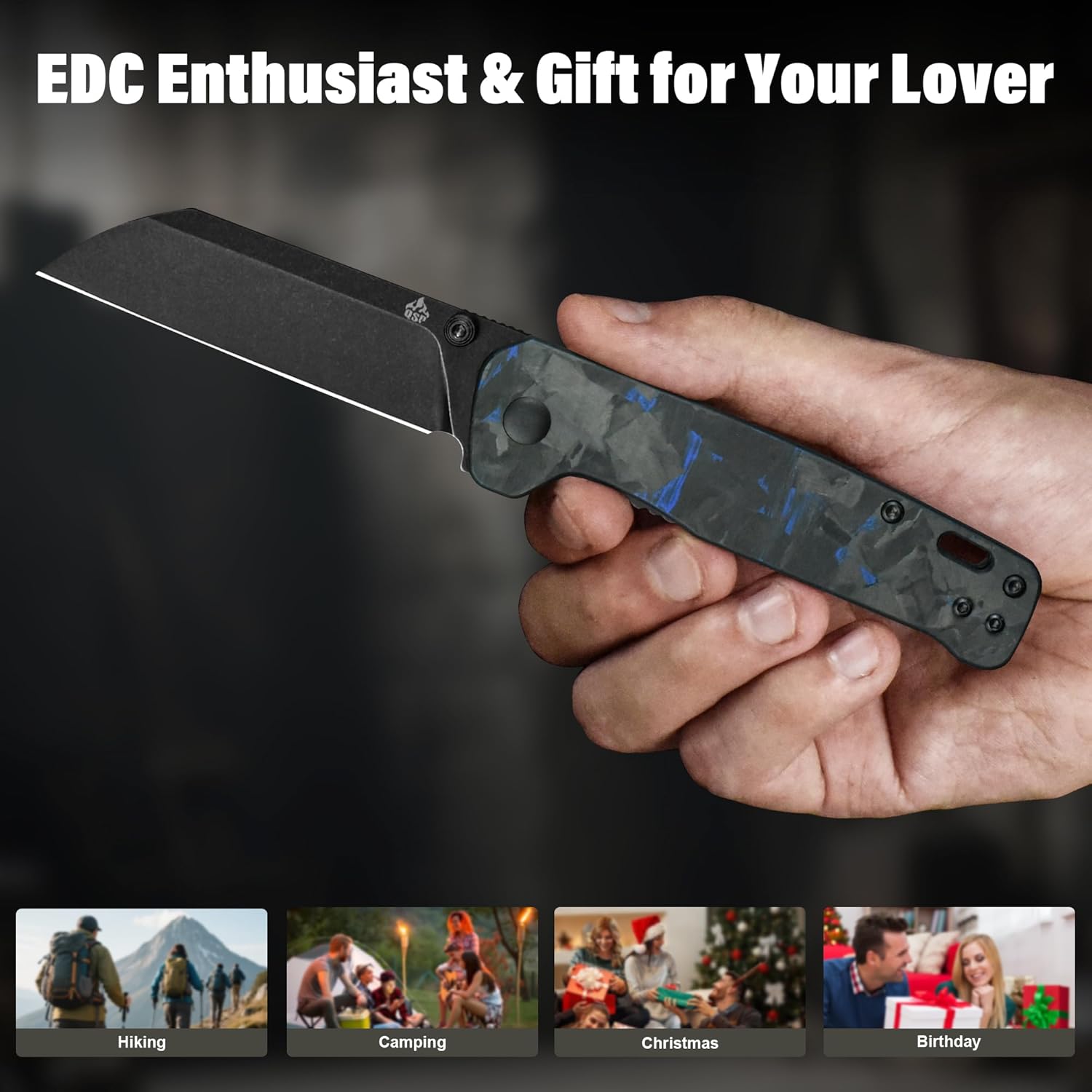 - Comfortable Grip: This qsp penguin knife features blue shredded CF overlay G10 handle with an ergonomic design that ensures easy operation even during extended use. It maintains excellent performance even in wet conditions, while also offering durability and non-slip grip.