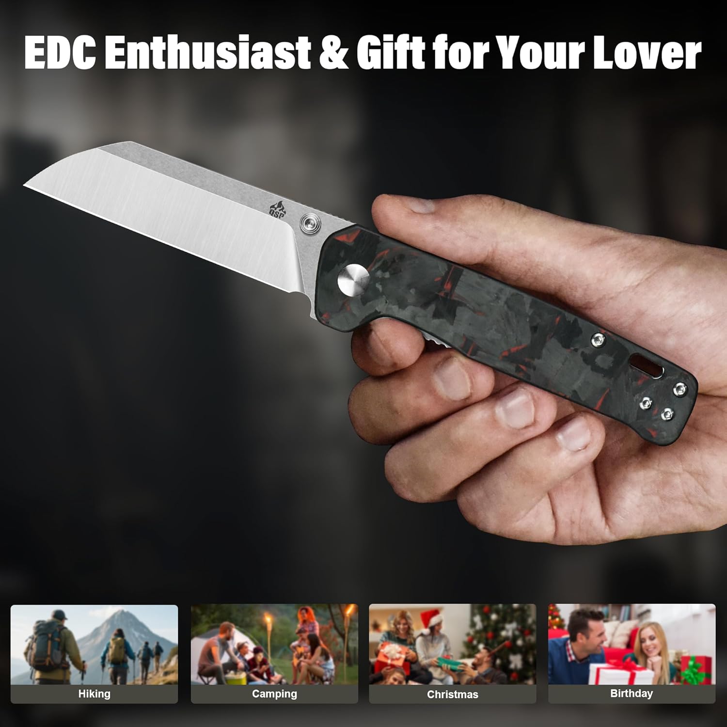 - Comfortable Grip: This qsp penguin knife features red shredded CF overlay G10 handle with an ergonomic design that ensures easy operation even during extended use. It maintains excellent performance even in wet conditions, while also offering durability and non-slip grip.