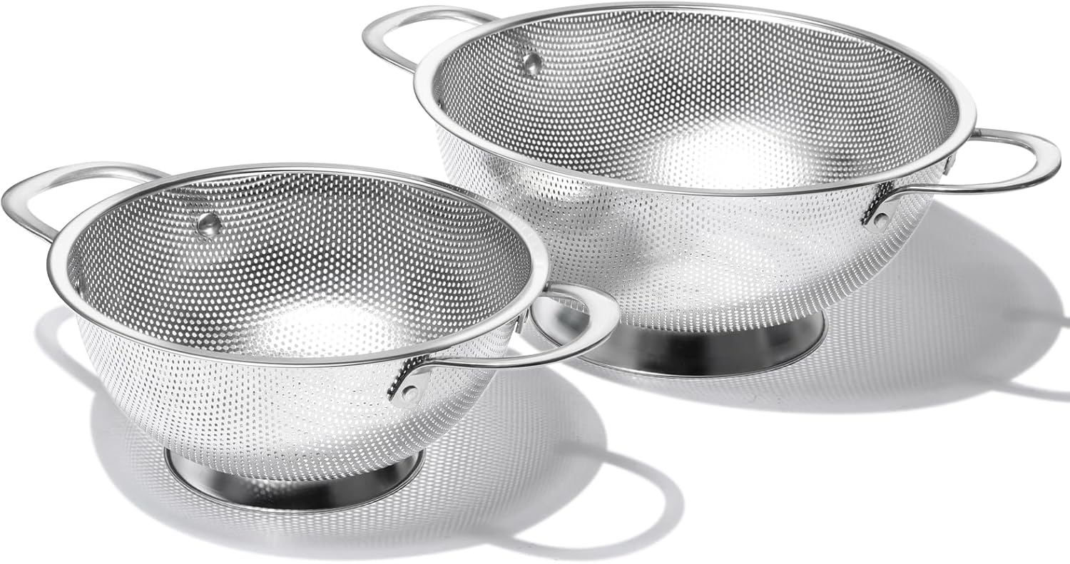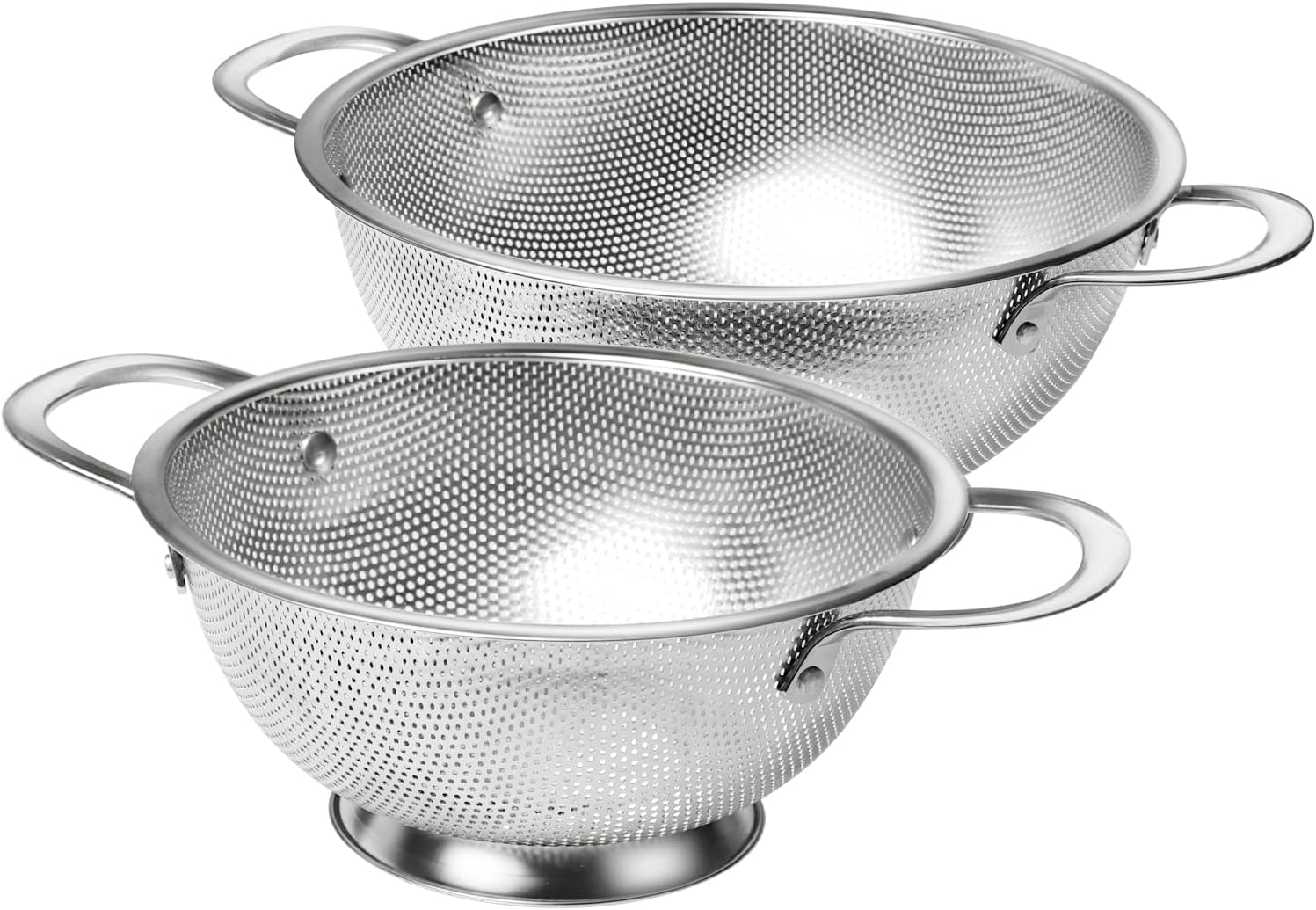 - 【Complete Kitchen Solution】This set combines the 5QT large colander and 3QT strainer, crafted from high - quality stainless steel. The 5QT colander offers large - capacity functionality, while the 3QT strainer provides precision draining, catering to all your straining, rinsing, and steaming needs in one comprehensive package.