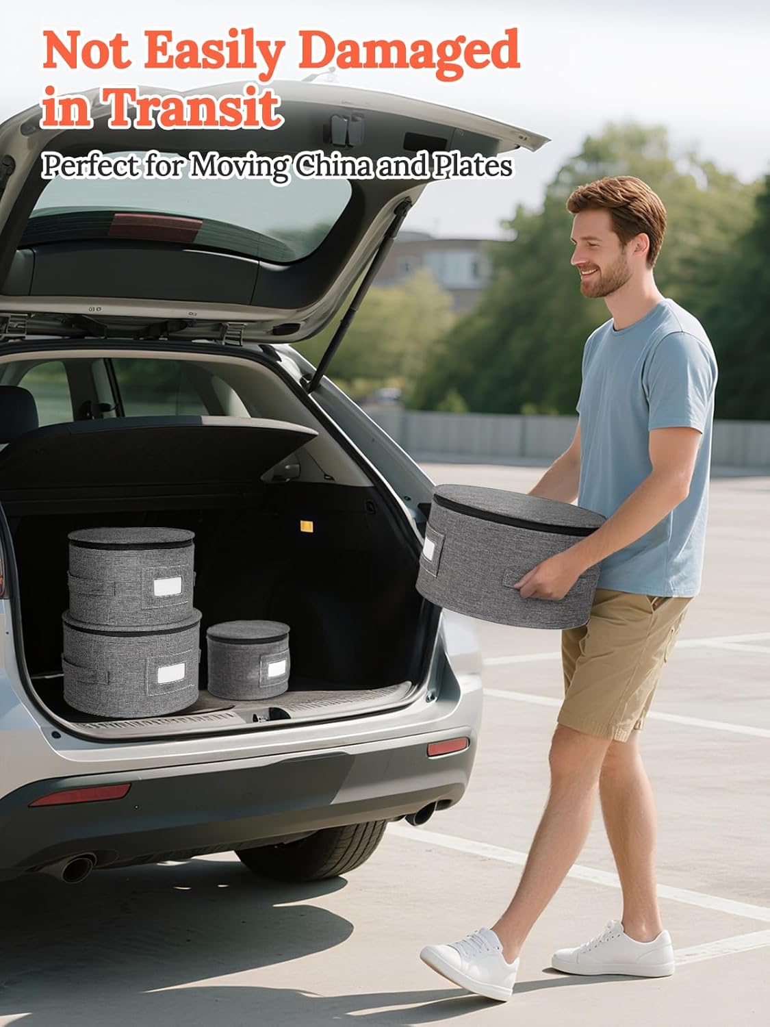 - Versatile Storage Solution: Our 4-piece china storage set fits plates, bowls, and glassware of various sizes. Equipped with strong zippers and durable handles, each box is easy to carry. Transparent window labels let you identify contents at a glance.