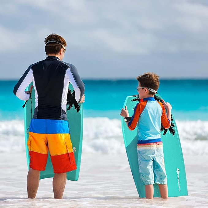 • [Premium Construction & Durability]: Engineered for premium performance, this bodyboard utilizes heat-sealed lamination technology to reinforce structural integrity and waterproofing. XPE deck resists impact, while the weatherproof EPS core delivers optimal buoyancy and shock absorption. Paired with smooth HDPE bottom, it allows for effortless, high-speed gliding.