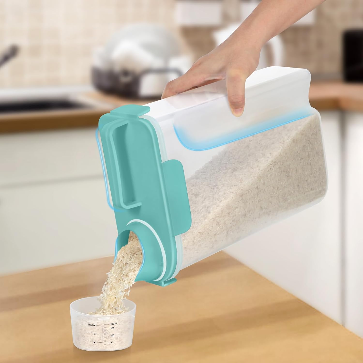 - VERSATILE FOOD STORAGE CONTAINER: This rice container with airtight spout lid is great for storing and dispensing rice, flour, cereal, beans, oats, nuts and much more
