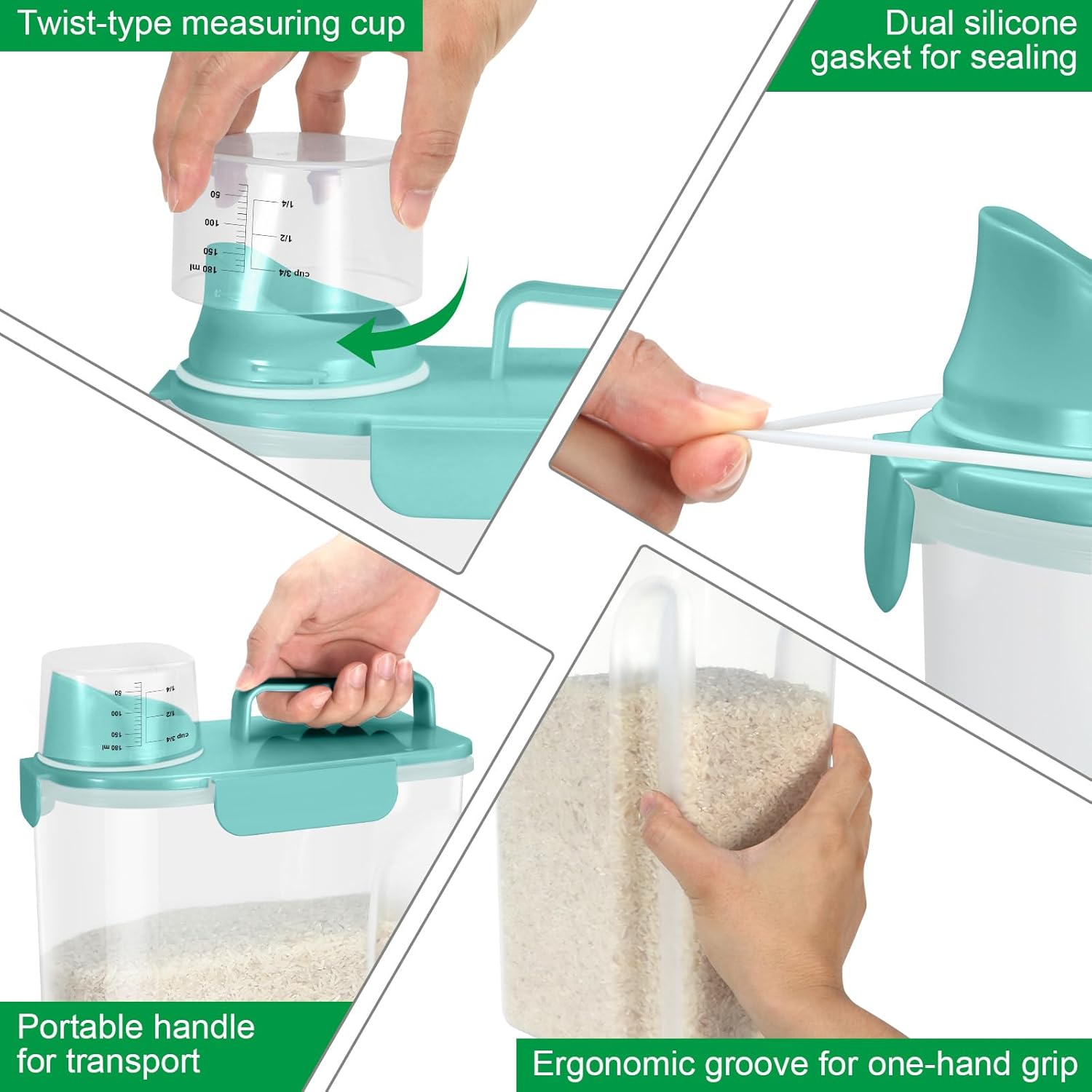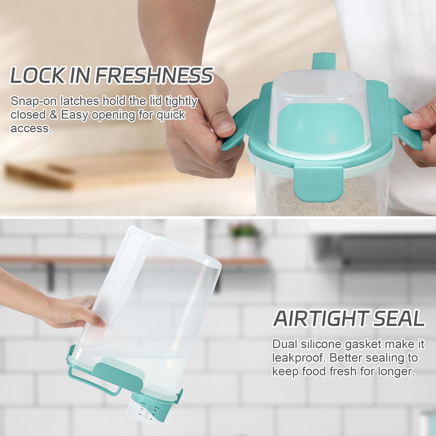- AIRTIGHT SEAL RICE STORAGE: The side-locking lids with silicone seal keep out moisture, always keeping your food super fresh and dry