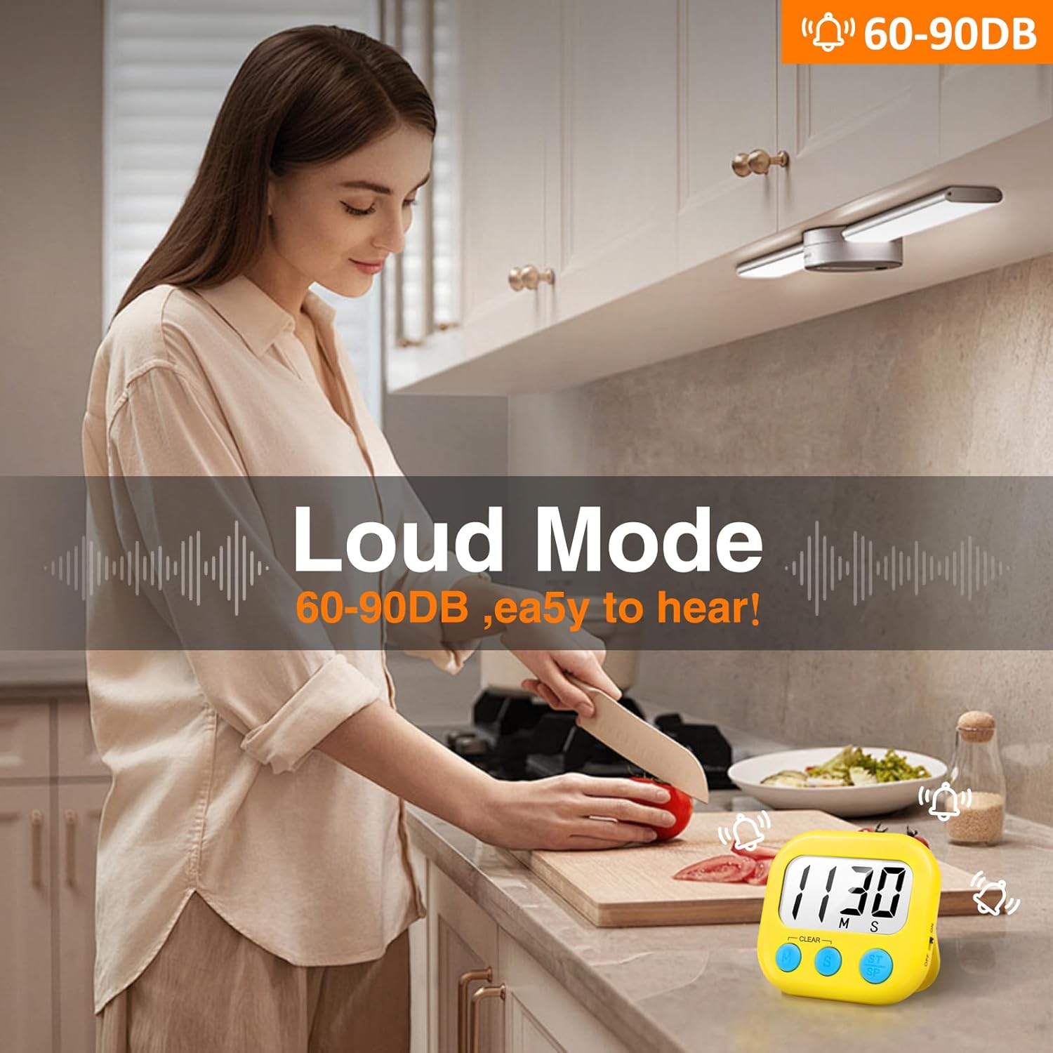 - Kitchen Timers with big buttons, large digital display, loud buzzer and clean bright look(Battery Not Included)
