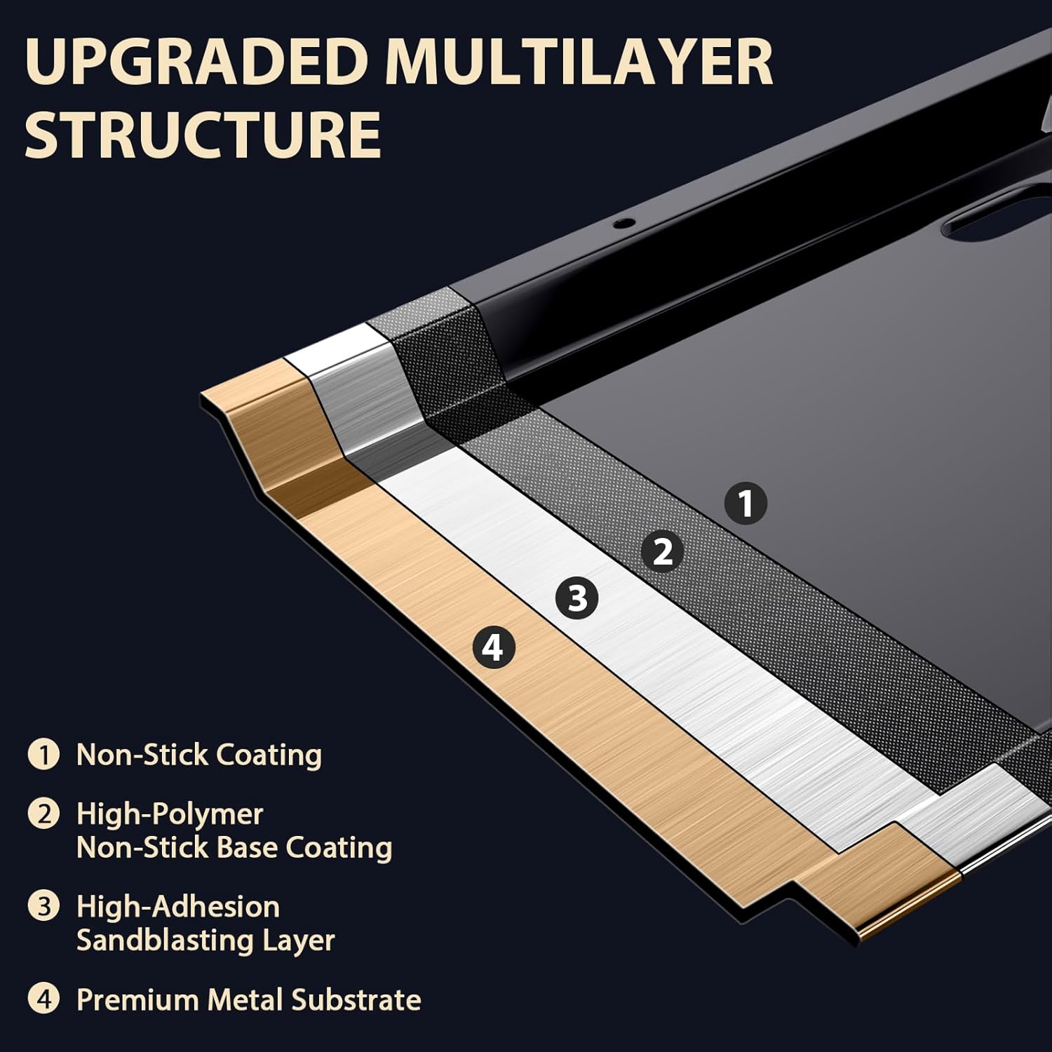 - Nano-Ceramic Coating for Effortless Cooking: Our griddle features a thick nano-ceramic surface that resists scratches, heats evenly, and releases food with little to no oil. Non-toxic and eco-friendly, it makes every meal healthier—and every cleanup faster