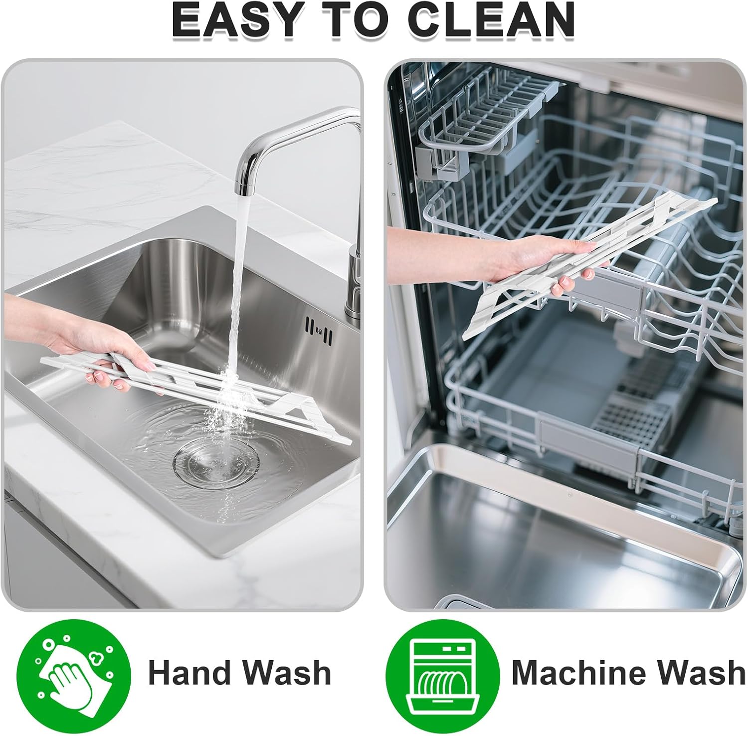 - ✔️【Food Grade Material, Safe and Customizable】BPA free food grade silicone wrapped in 304 stainless steel, anti-slip and anti-rust, safe for contact with utensils. Silicone edge supports scissor cutting, free to adjust the size, perfect fit for personalized space. Sturdy structure to support heavy objects, long-lasting use without deformation.