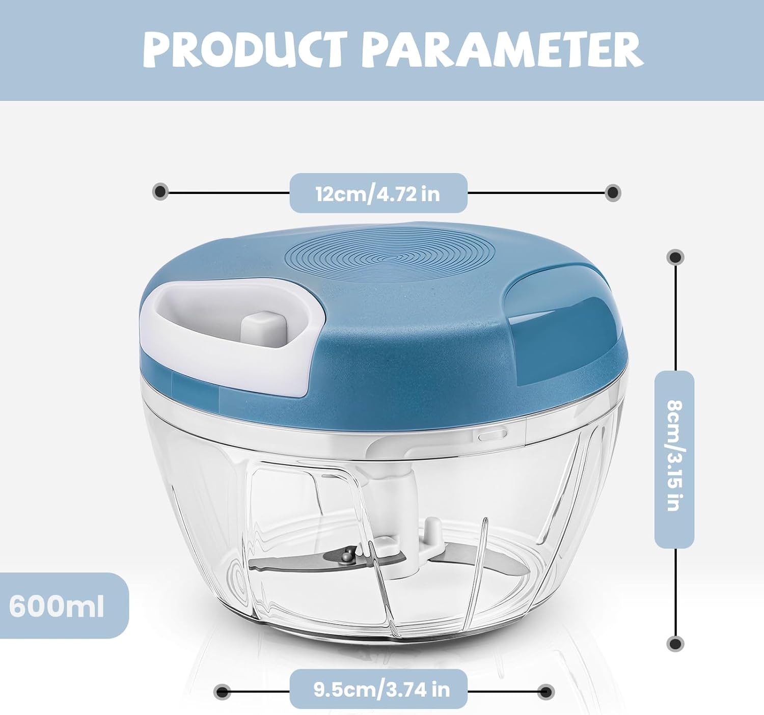 Manual Food Chopper: Hand Pull String Vegetable Chopper for Onion, Garlic, Pepper, Nuts, Tomato, etc.,500ml.